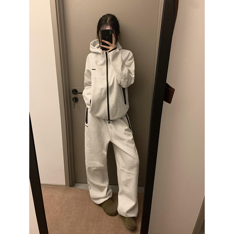 时尚休闲运动套装女春秋超火穿搭巨好看慵懒卫衣弯刀阔腿裤两件套