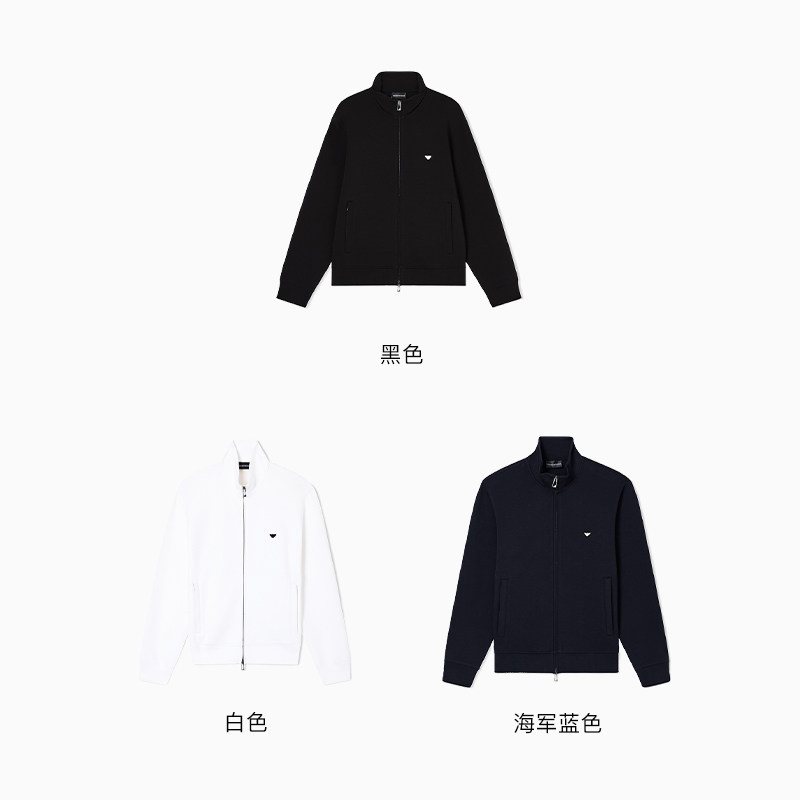 EMPORIO ARMANI/阿玛尼春新款男士立领拉链刺绣休闲重磅卫衣外套