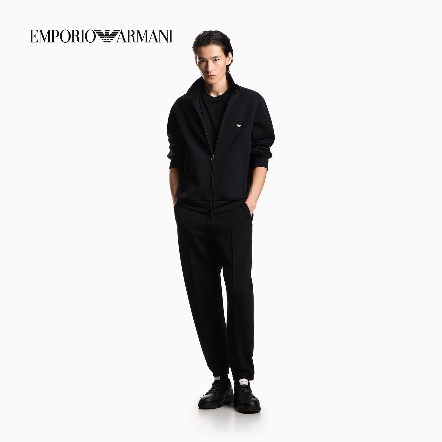 阿玛尼男士立领拉链刺绣卫衣外套