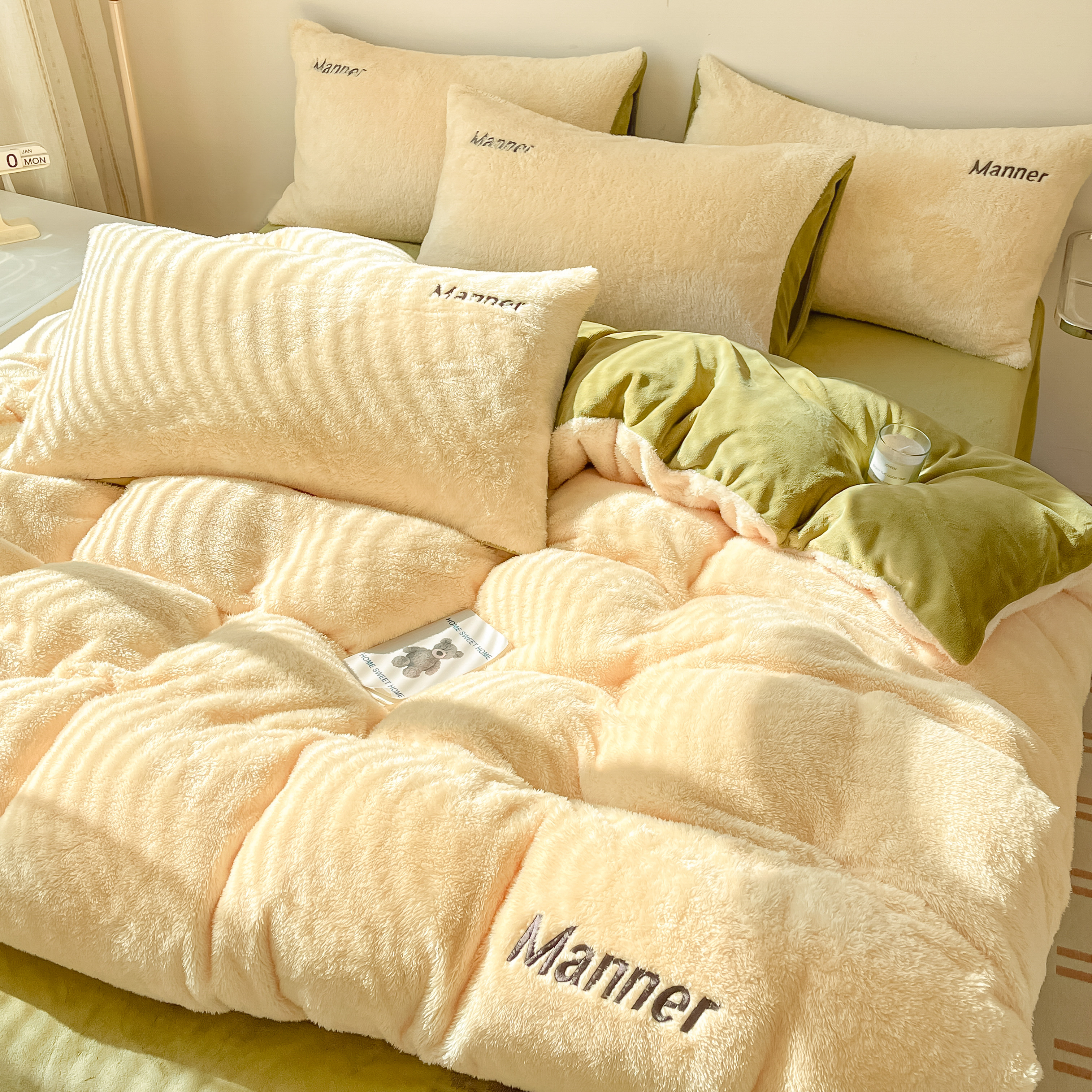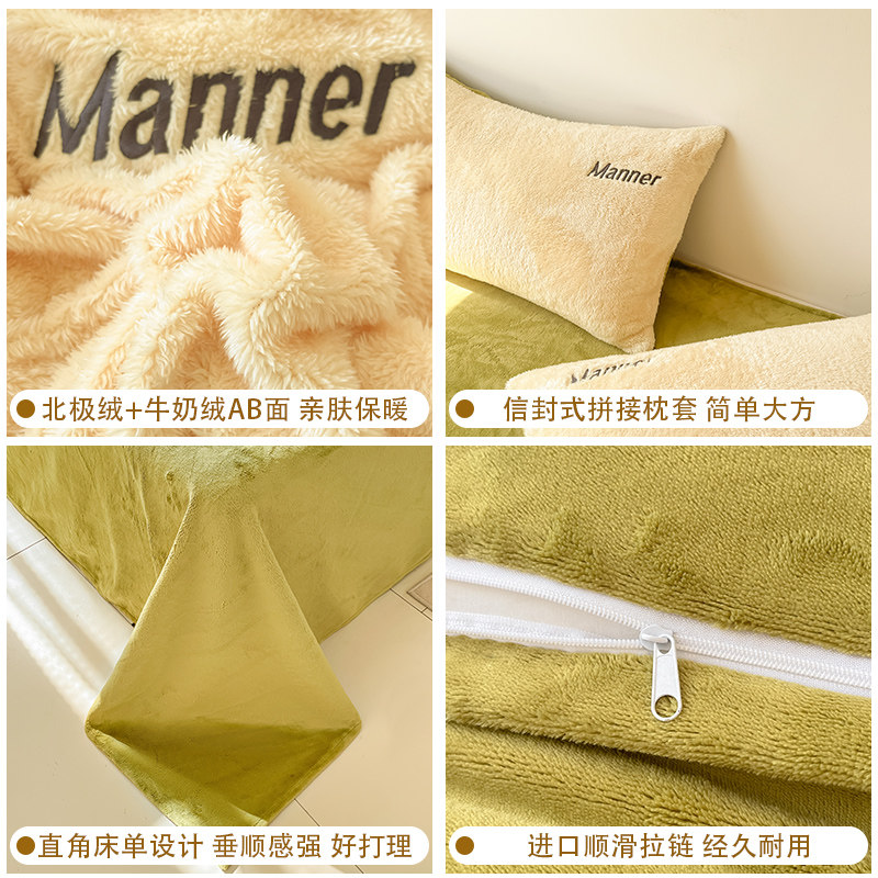 高克重北极绒A类刺绣四件套牛奶绒冬季加厚保暖舒适珊瑚绒法兰绒4