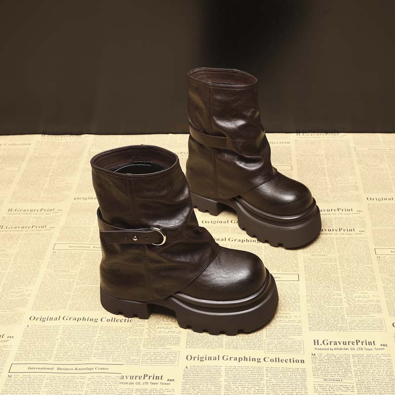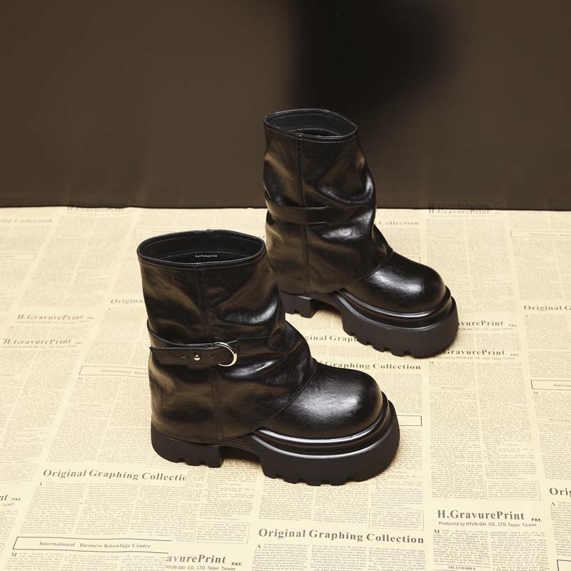 粗跟短靴女2025秋季新款裤管靴高跟马丁靴复古堆堆靴厚底增高女靴