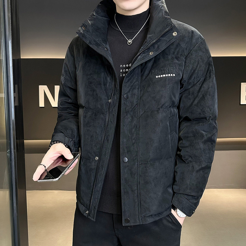 高端麂皮绒外套男加绒加厚冬季新款保暖潮牌白鸭绒羽绒服男士夹克