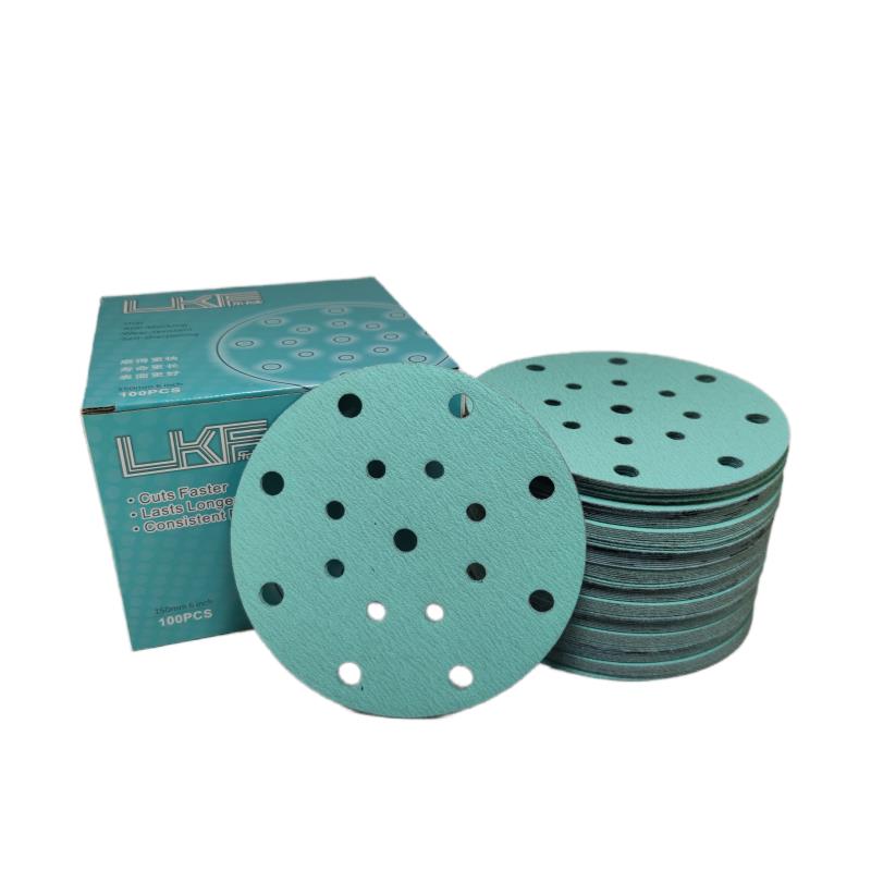 绿砂5寸6孔干磨砂纸6寸17孔打磨抛光植绒气磨机自粘盘圆形沙纸