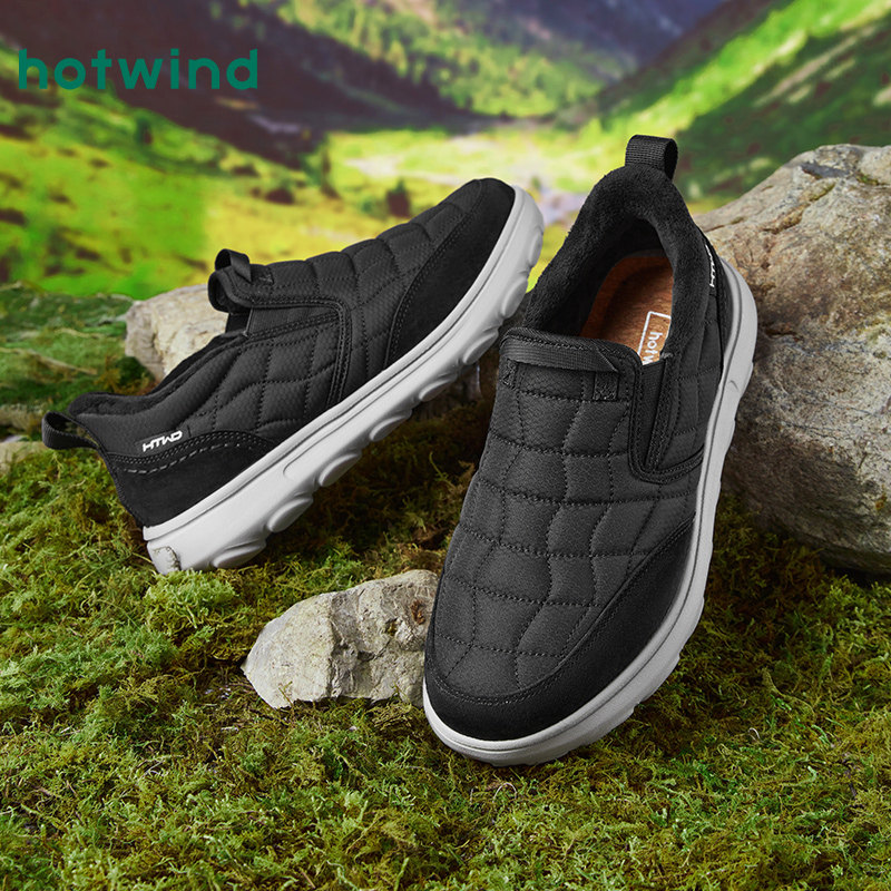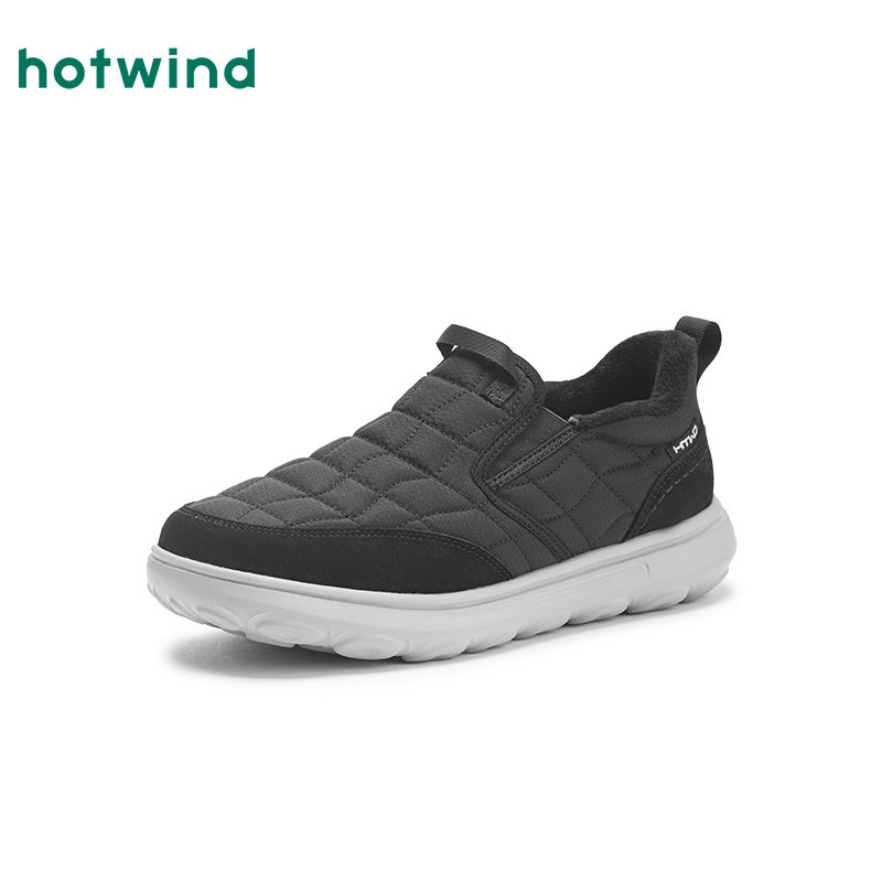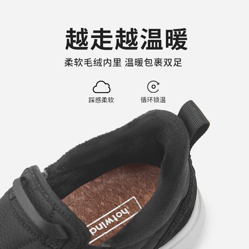 热风男鞋2024年冬季新款男士时尚圆头套脚休闲鞋加绒保暖舒适鞋子