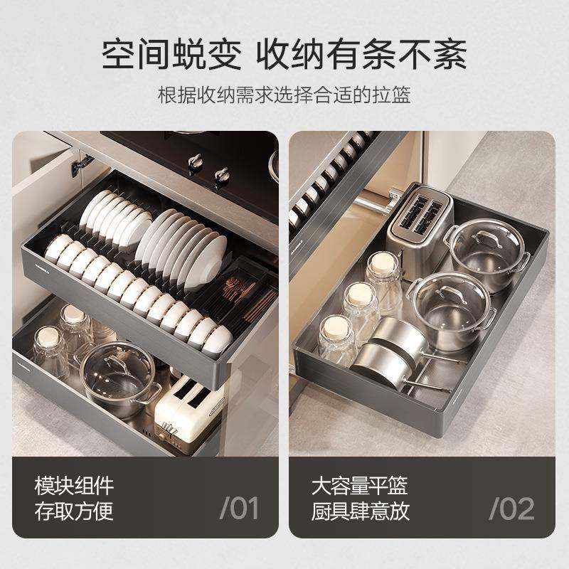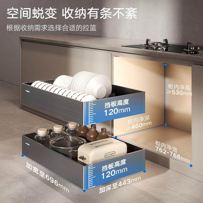 悍高橱柜拉篮铝合金双层开门式碗篮内置碗架304不锈钢收纳碗碟篮