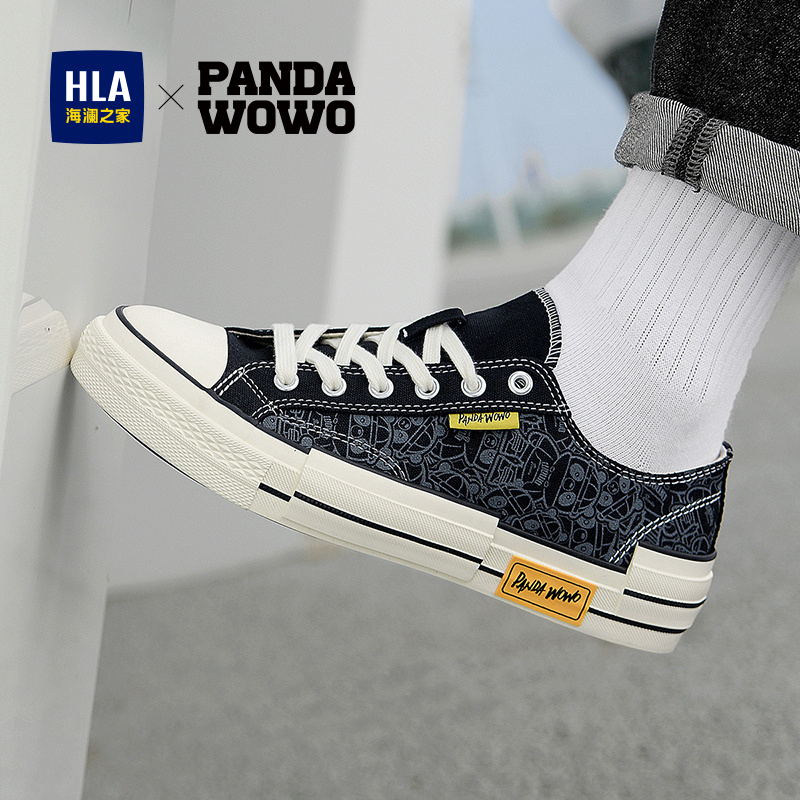 海澜之家男鞋2025新款秋季透气低帮帆布鞋黑色经典潮流平底板鞋男