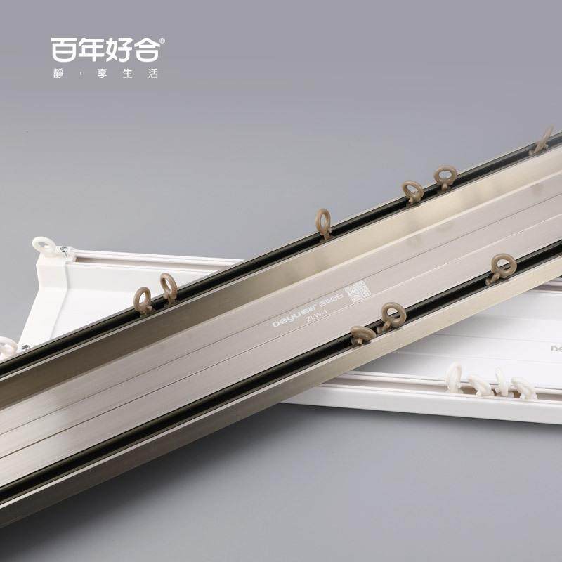 德裕连体双轨道客厅卧室飘窗铝合金静音轨道顺滑窗帘杆顶装