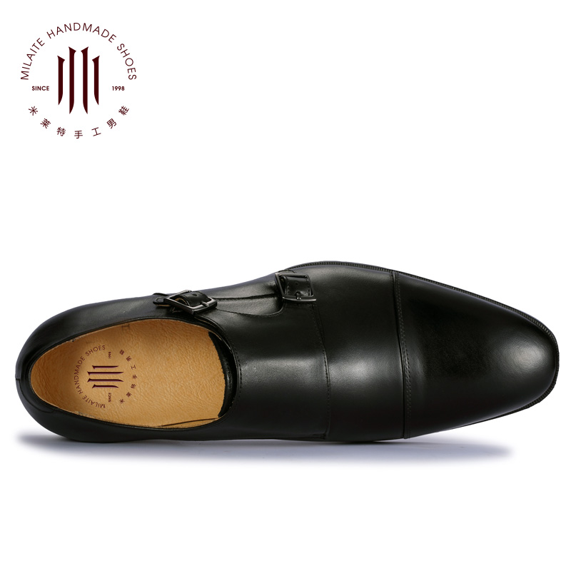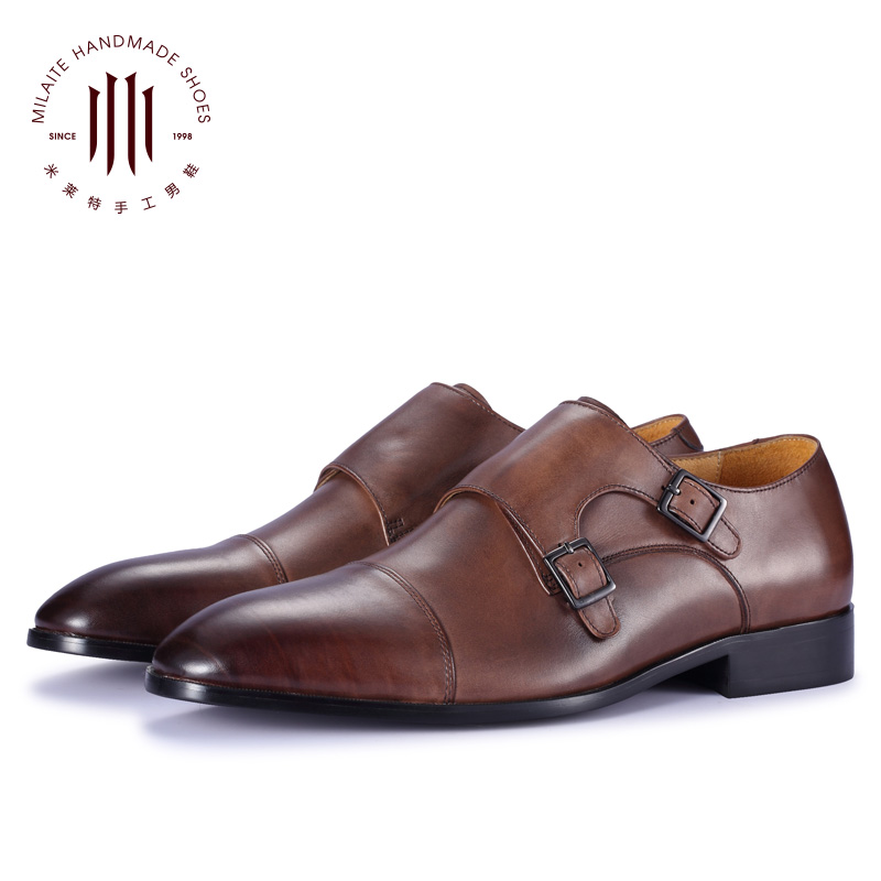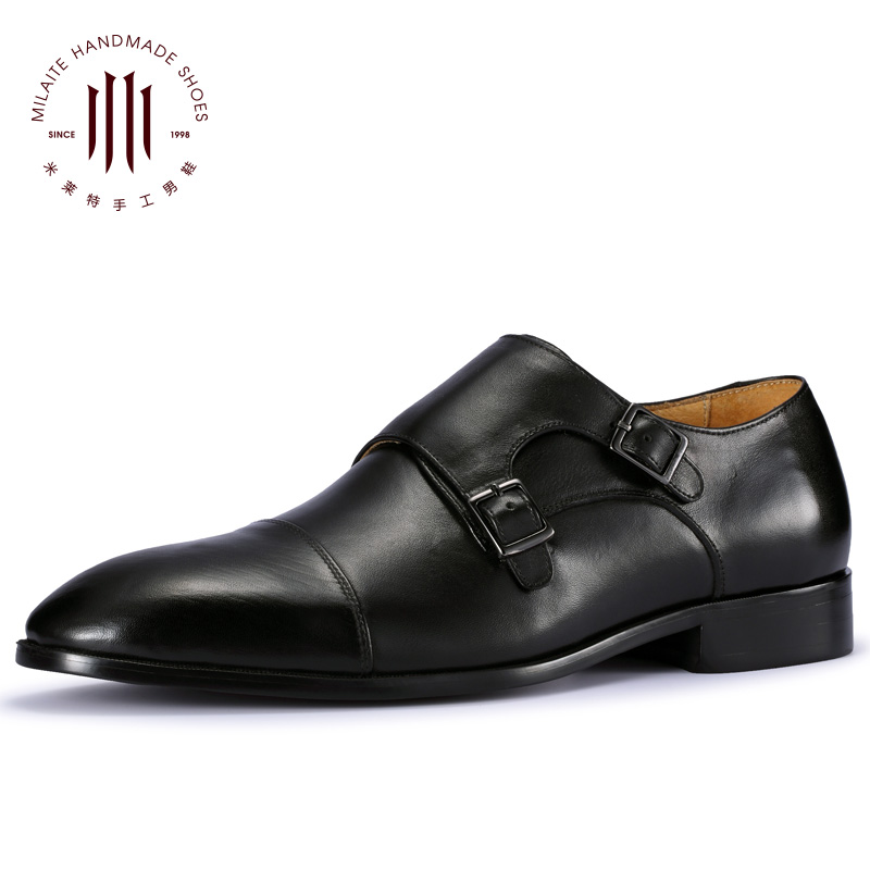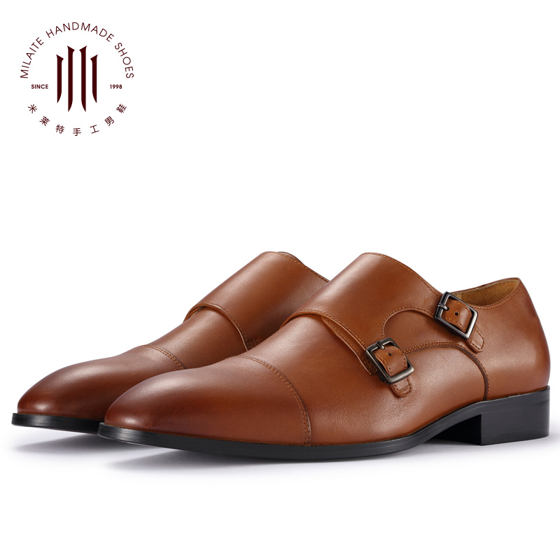 英伦真皮鞋男士商务正装欧版搭扣僧侣孟克男鞋青年套脚一脚蹬小码