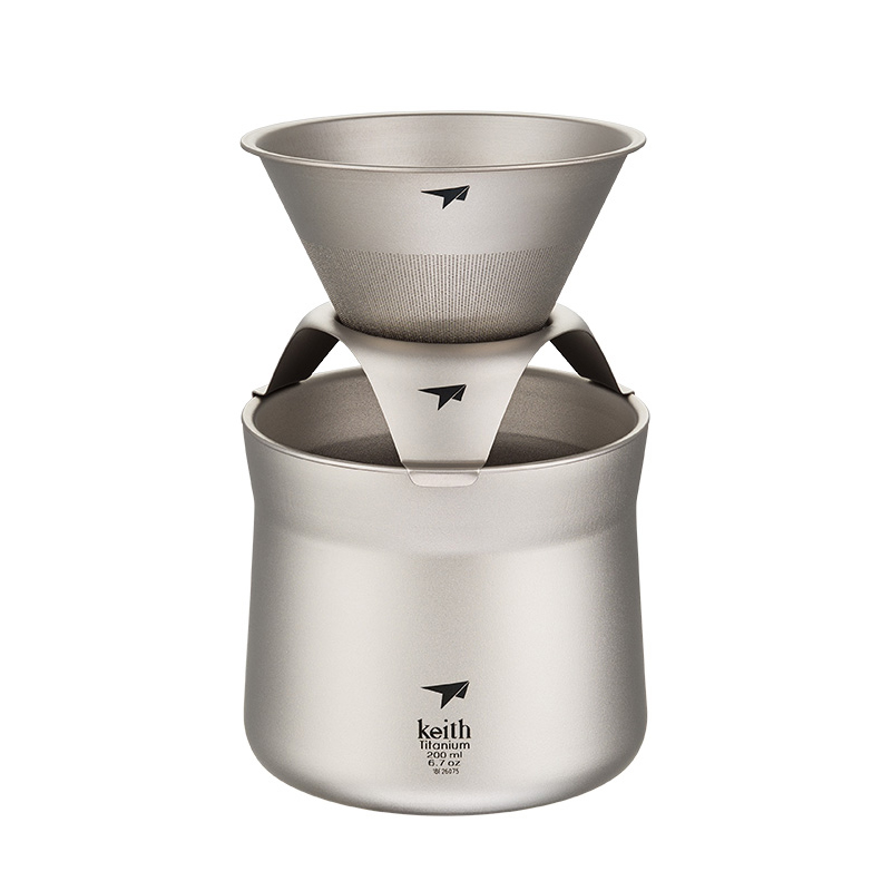 keith铠斯纯钛咖啡壶轻质茶杯带滤网漏斗户外多功能咖啡杯Ti3911