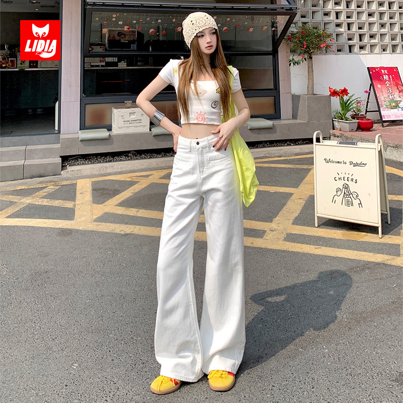 白色阔腿牛仔裤女秋冬2025新款高腰显瘦直筒宽松垂感百搭拖地裤子