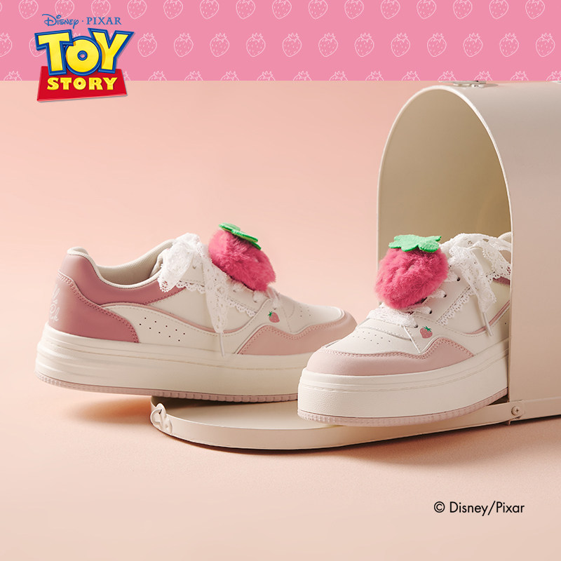 【迪士尼系列】热风草莓熊小白鞋女2025年秋季新款厚底休闲鞋板鞋