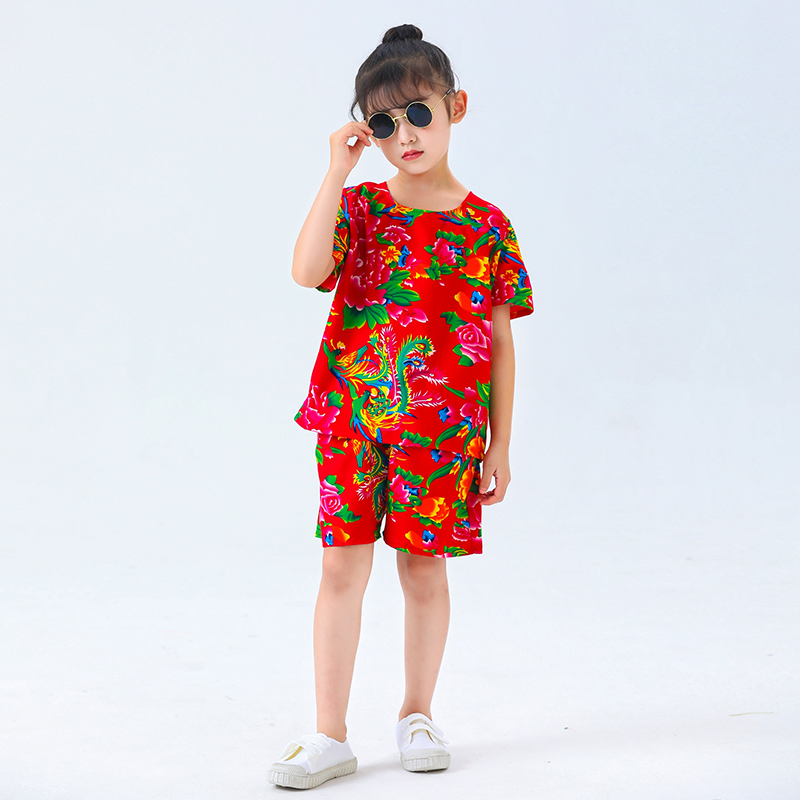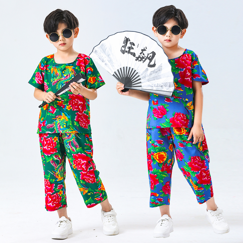 儿童东北大花布衣服伴娘闺蜜聚会网红搞笑中小学生运动会表演出服