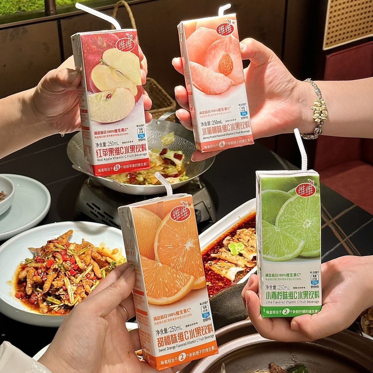 维维苹果甜橙青柠水蜜桃维C果汁饮料250ml自助餐果饮整箱批发正品