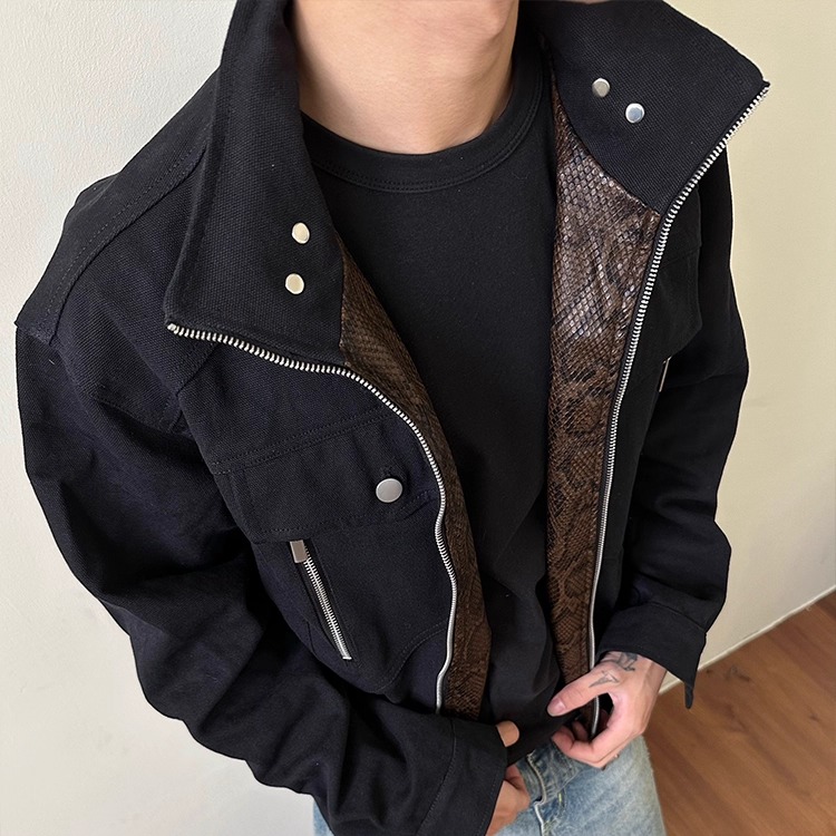 美式复古蛇年限定座山蟒夹克外套