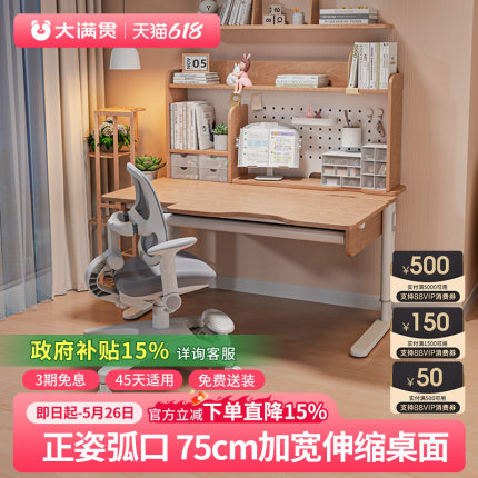 大满贯儿童学习桌小学生学习家用实木书桌可升降调节写字桌椅套装