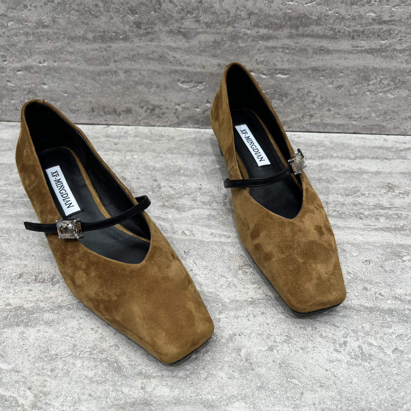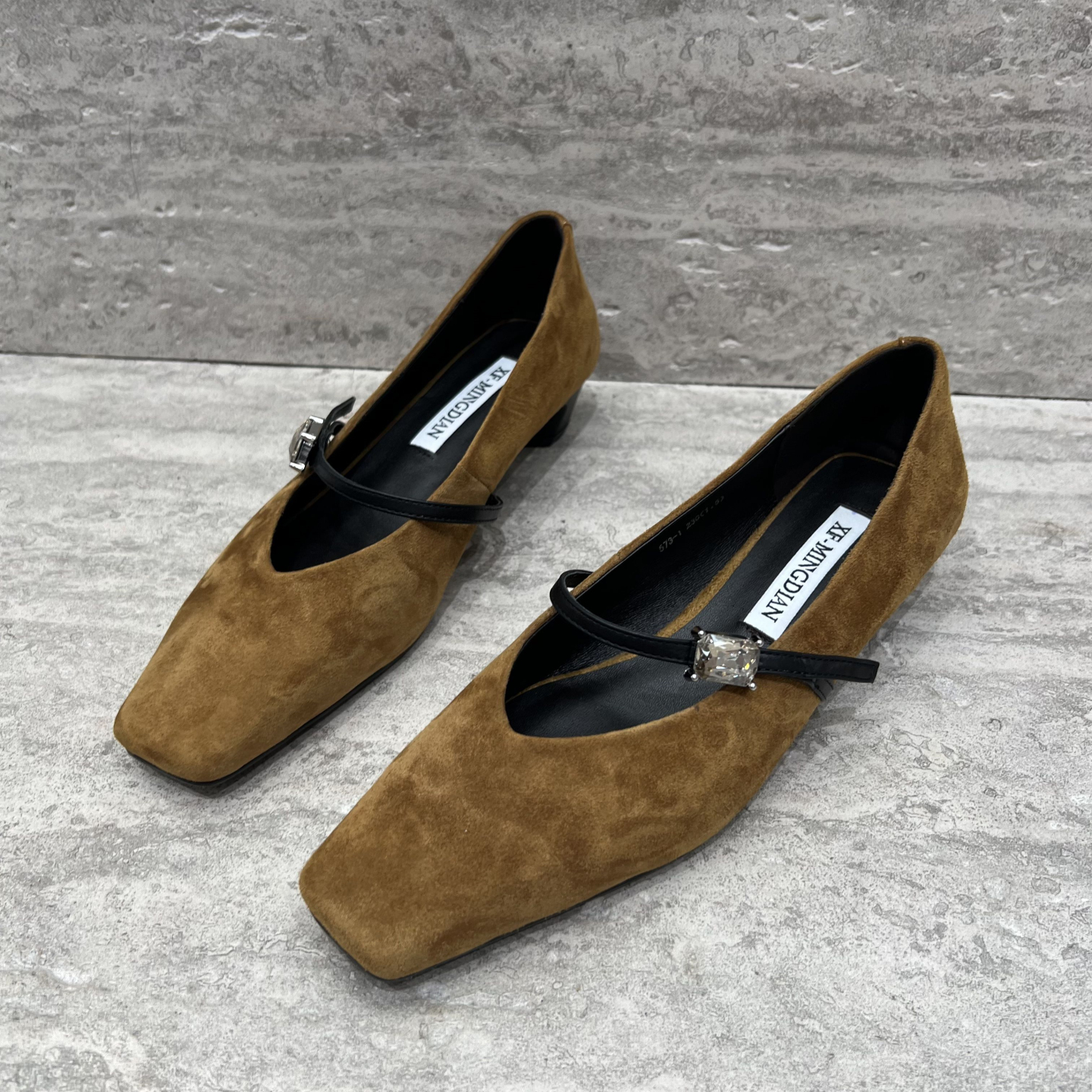 欧货方头粗跟单鞋磨砂皮玛丽珍鞋