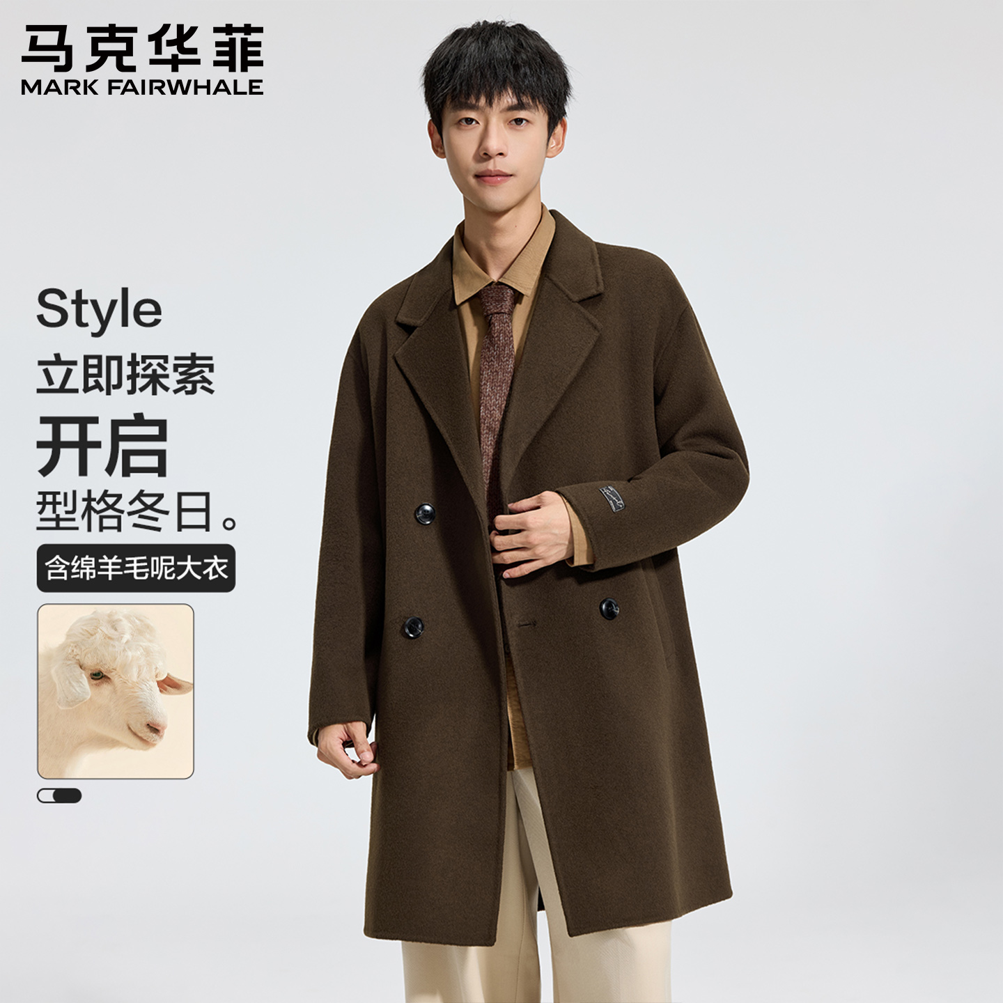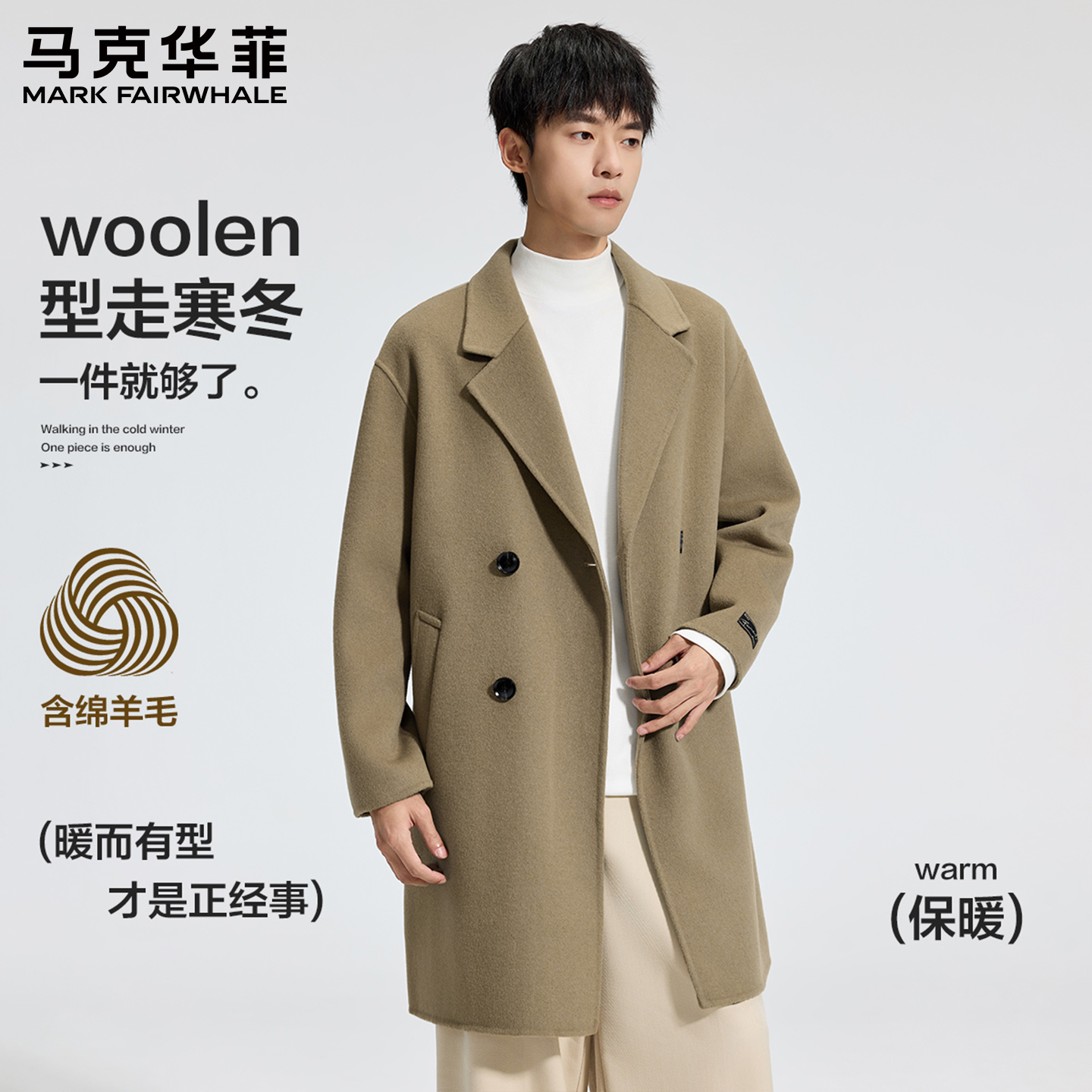 马克华菲中长款羊毛大衣男款2025年秋冬新款保暖加厚休闲呢子外套
