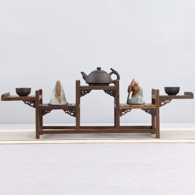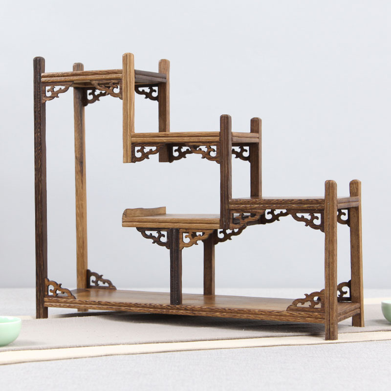 红木鸡翅木小博古架实木中式多宝阁木雕H摆件底座茶壶茶具架展示