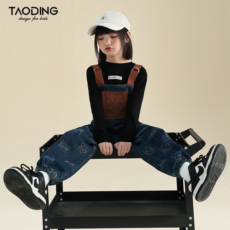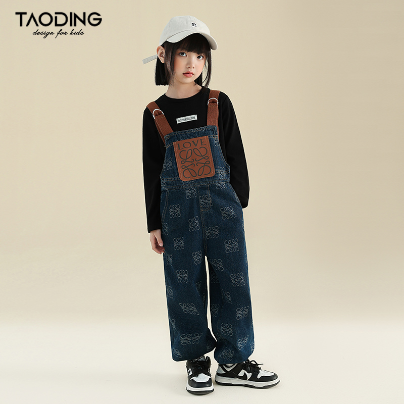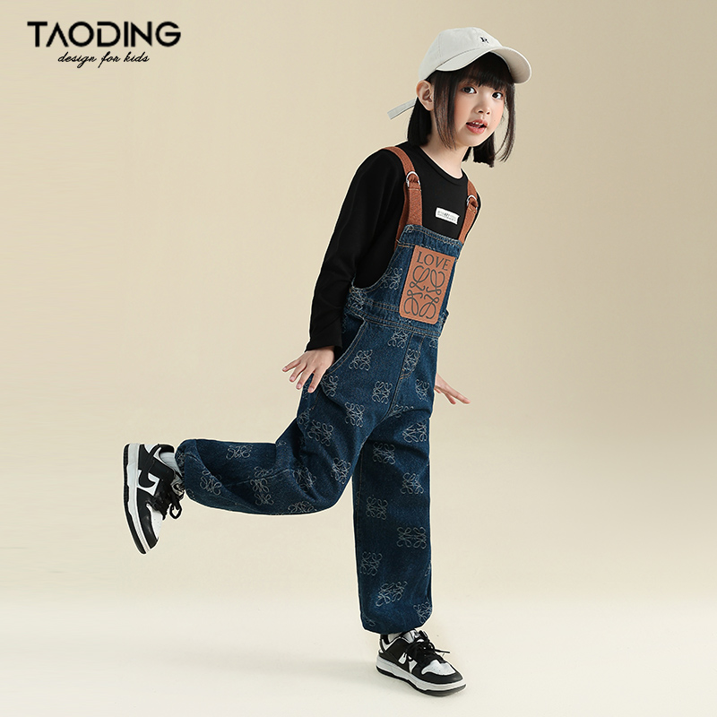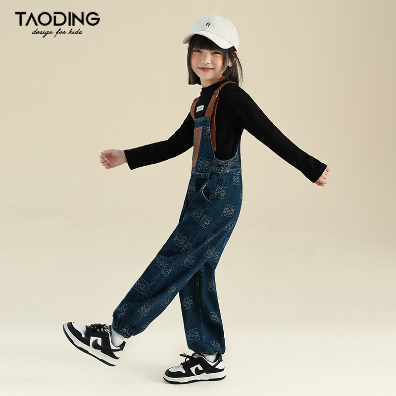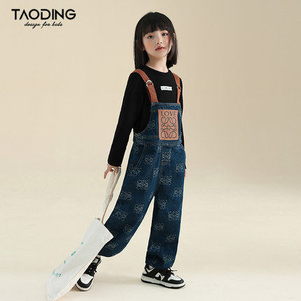 淘町女童背带裤2022春秋新款中大童装运动休闲裤子长裤儿童牛仔裤