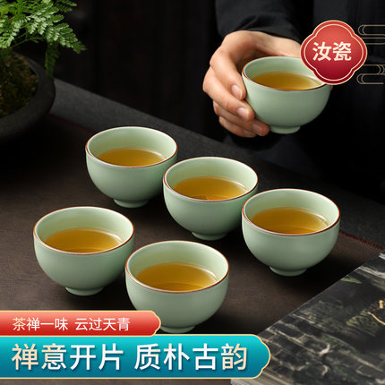 陶瓷汝窑茶杯可开片家用功夫茶具品茗杯喝茶杯主人杯个人杯茶碗