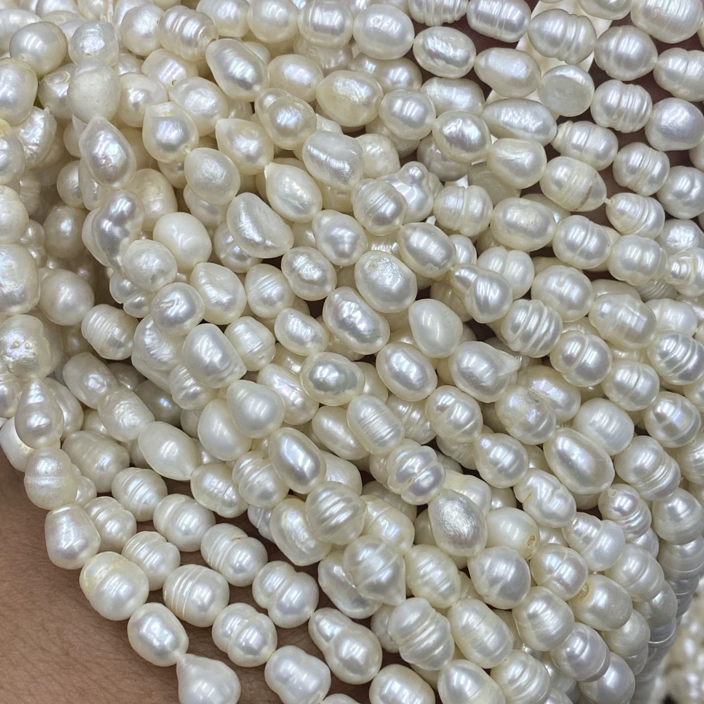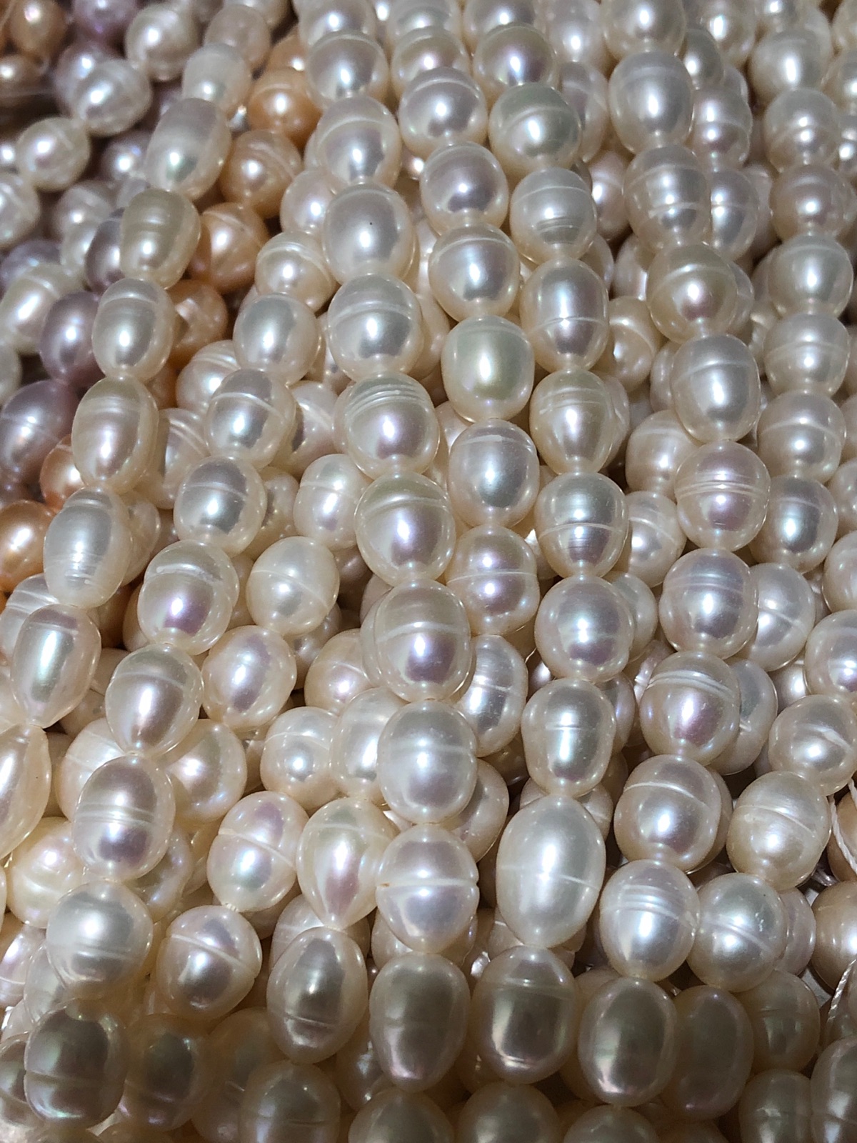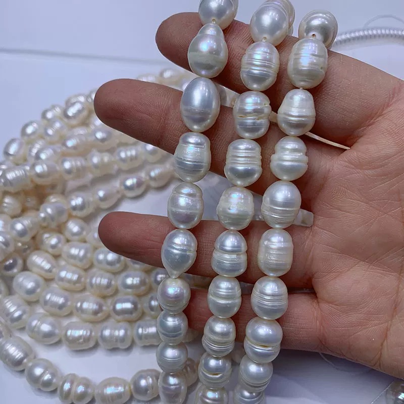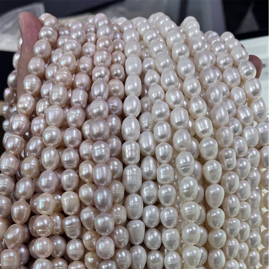 水之泪天然淡水无核珍珠项链8–10mm米形强光特色螺纹有瑕简约diy