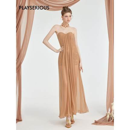 【徐如蓝同款】Sheer Luck 夏季新款Thea连衣裙露肩网纱抹胸礼服