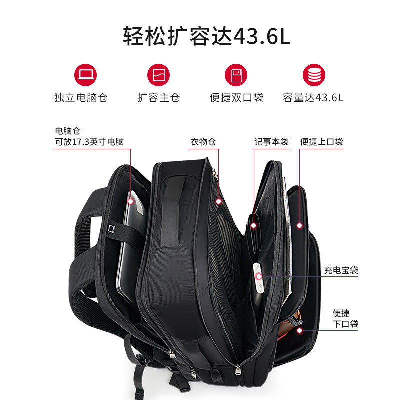 爱华仕移动办公系列双肩包大容量多功能商务电脑包可扩容出差男包