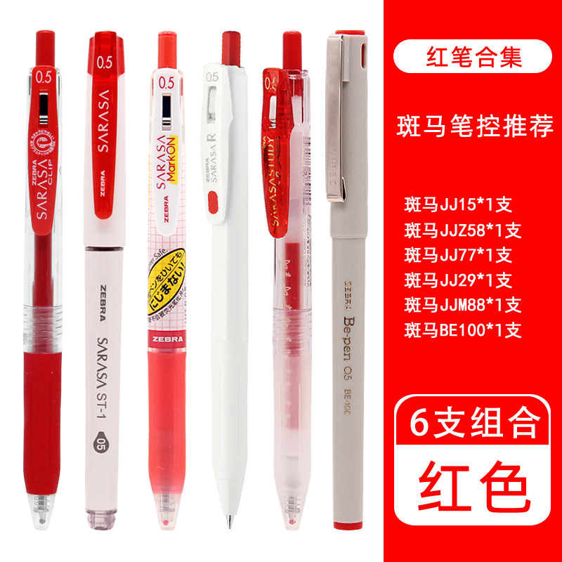 zebra斑马红笔JJ15按动红色中性笔百乐红笔三菱学生老师批改作业