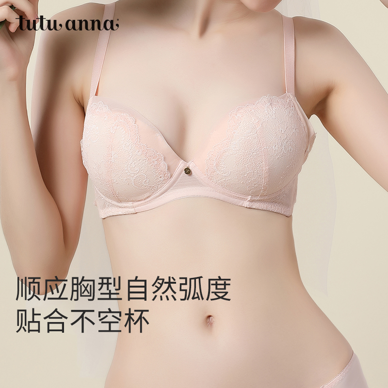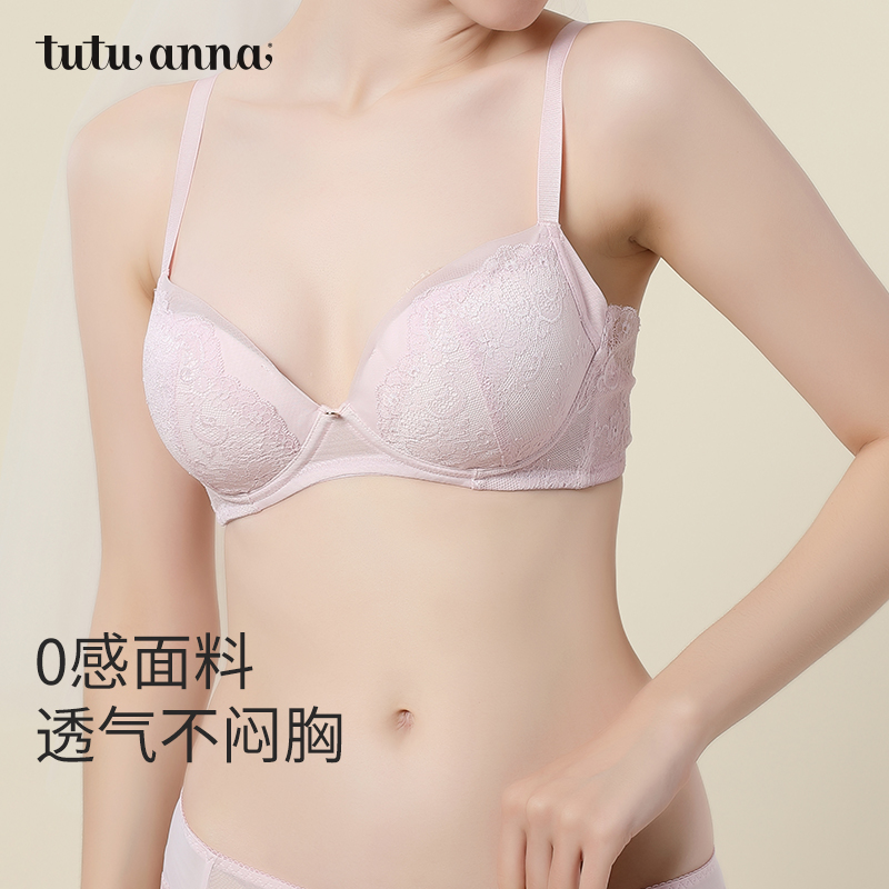 tutuanna内衣女透气聚拢小胸上托收副乳防下垂无钢圈蕾丝文胸女
