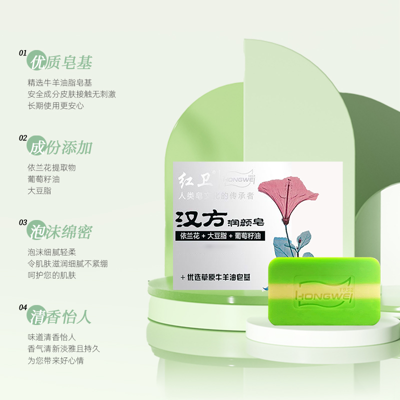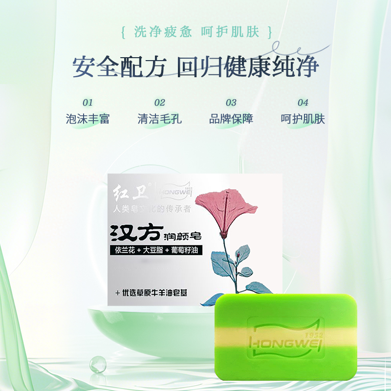 红卫汉方羊脂润颜皂洗脸洗澡香皂保湿锁水清凉养肤抑菌植物洗脸皂