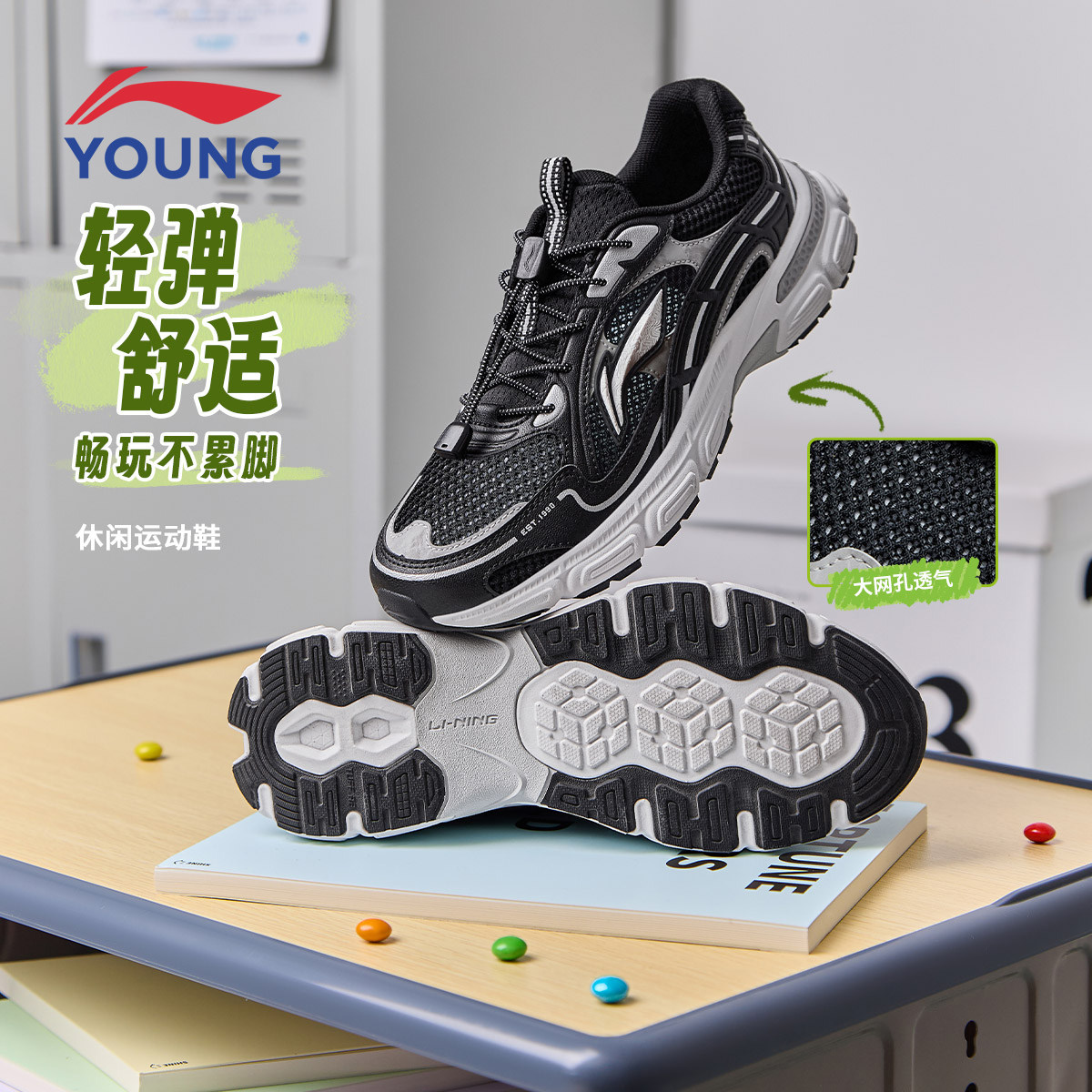 李宁童鞋2026春季新款男大童网面透气轻质防滑回弹儿童运动休闲鞋