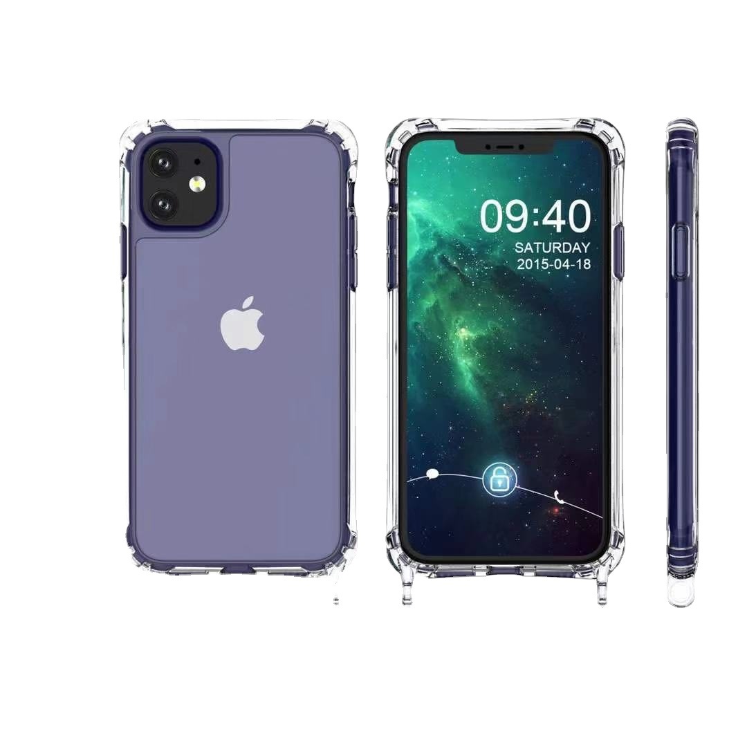现货苹果14pro透明iphonexsmax手机壳15plus一体挂绳斜挎单肩防摔