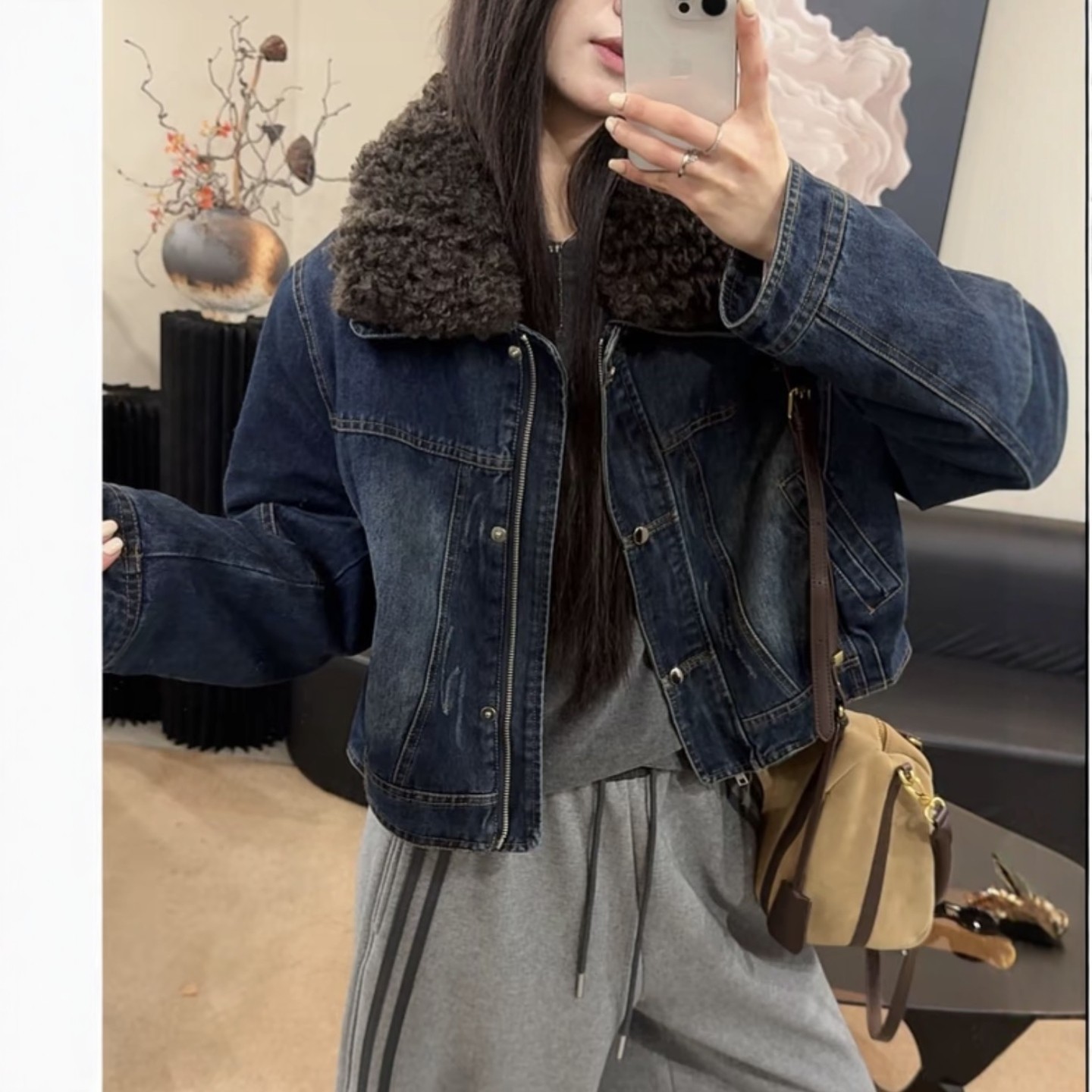 短款时尚设计感加棉加厚牛仔外套女装高级感冬季气质洋气保暖棉服