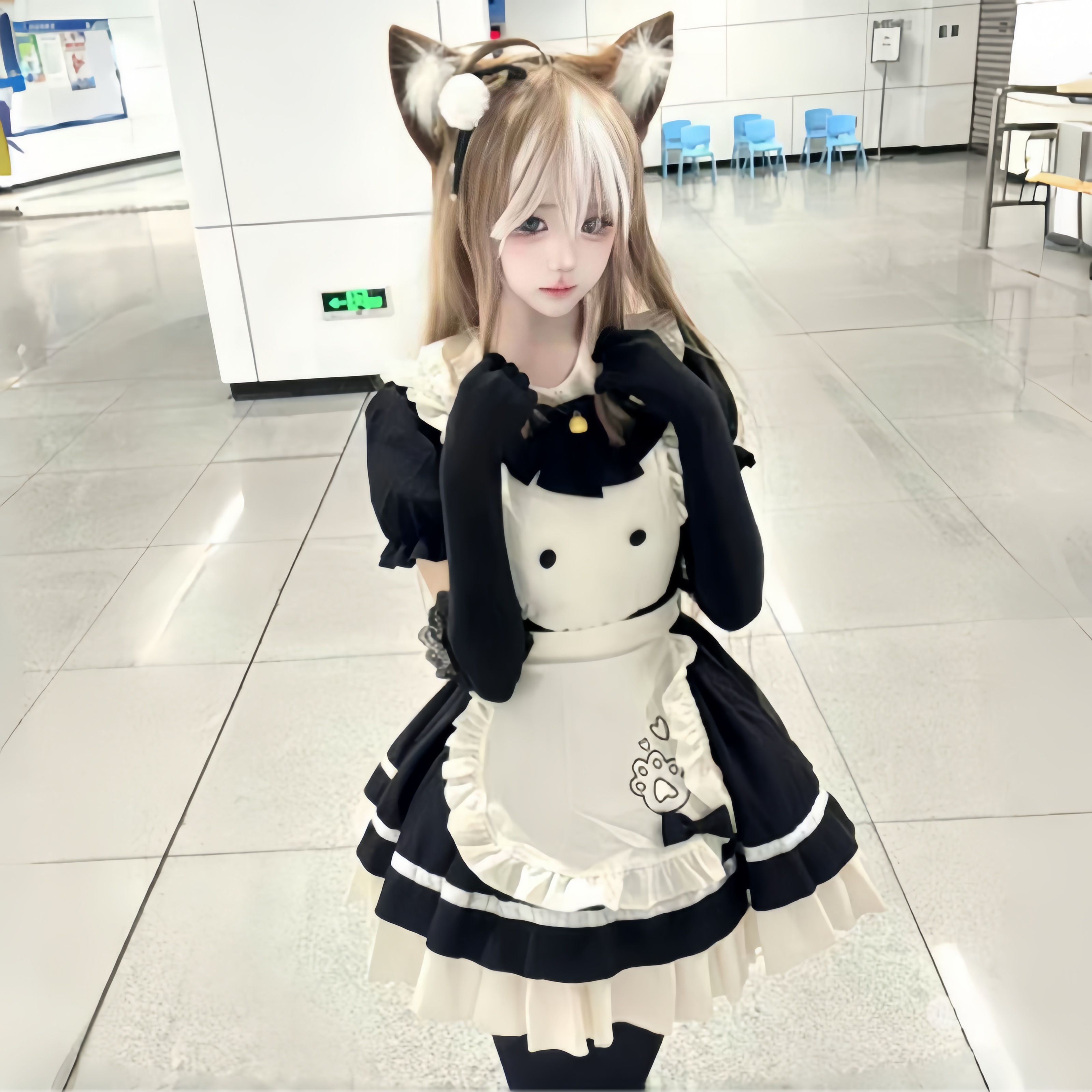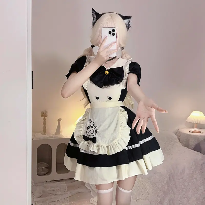 二次元cosplay猫咪可爱女仆装洛丽塔lolita连衣裙围裙软妹衣服夏