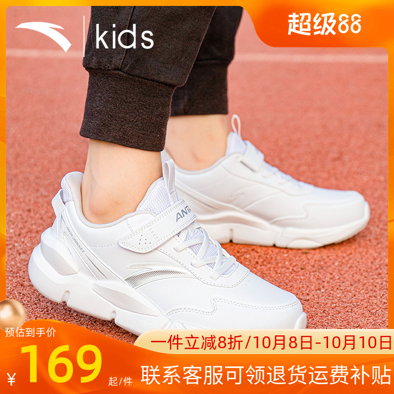 安踏儿童运动鞋秋季新款魔术贴男童小白鞋轻便大童跑步鞋皮面防水