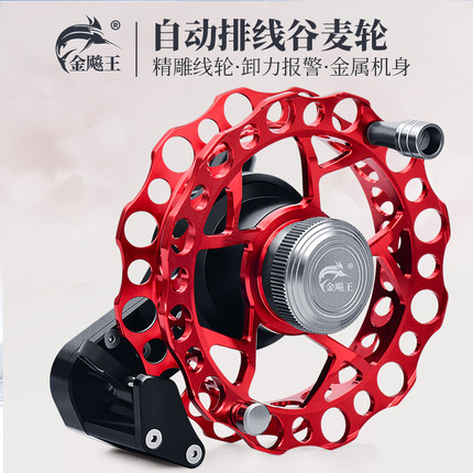 金飚王90mm自动排线风火轮谷麦轮前打竿专用全金属泄力八卦轮镂空