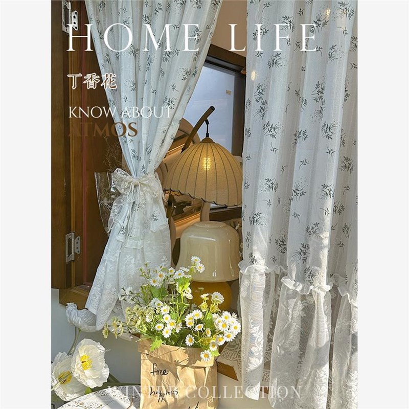 柜子遮挡帘高级感田园碎花蕾丝短帘半遮光窗帘厨房卧室飘窗免打孔