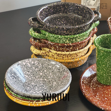 [YURUUI设计师]韩国EDING泼墨搪瓷双耳小碗酸奶碗烤碗韩系餐具