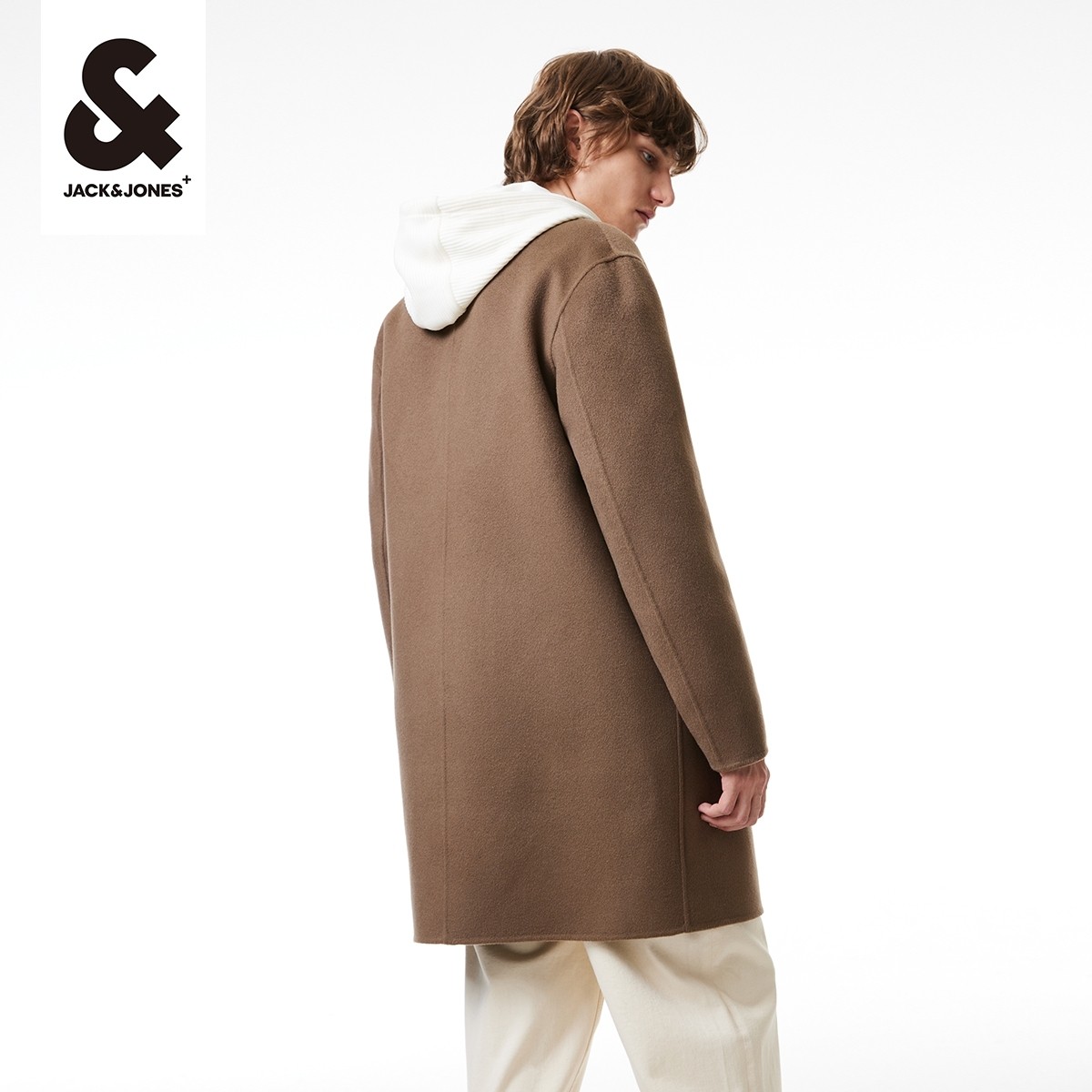 t区绫致杰克琼斯24秋冬羊绒混纺纯色宽松休闲毛呢大衣男