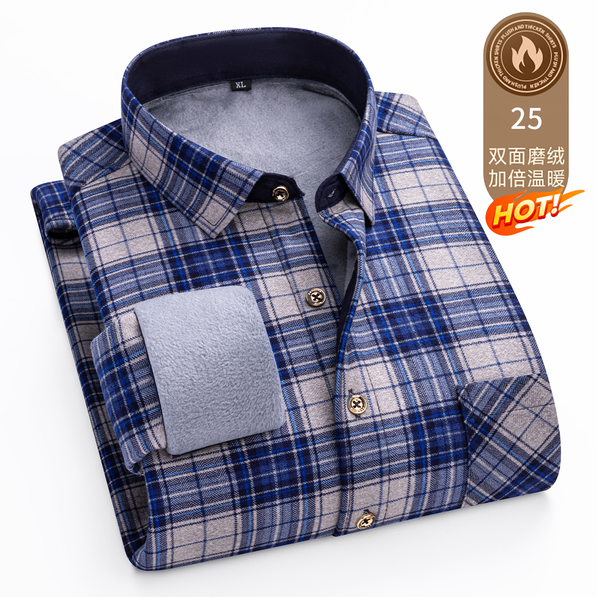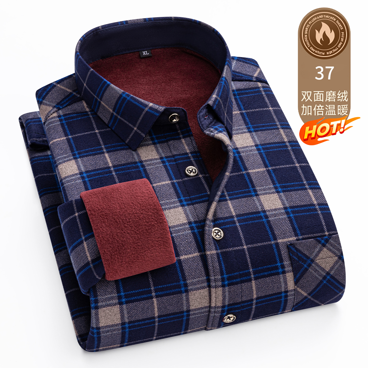 保罗冬保暖衬衫加绒加厚中老年男士上衣休闲格子父亲外套加肥大码