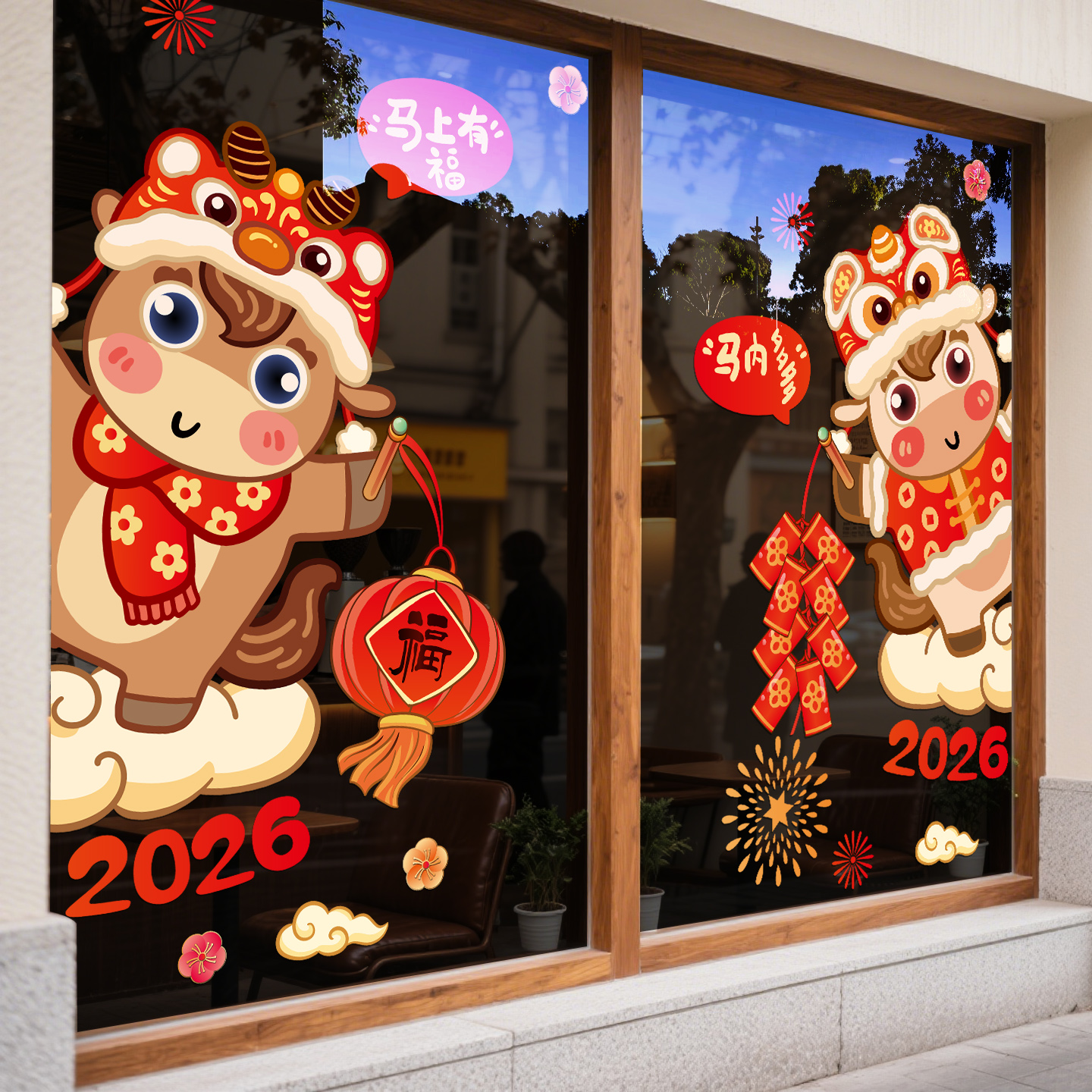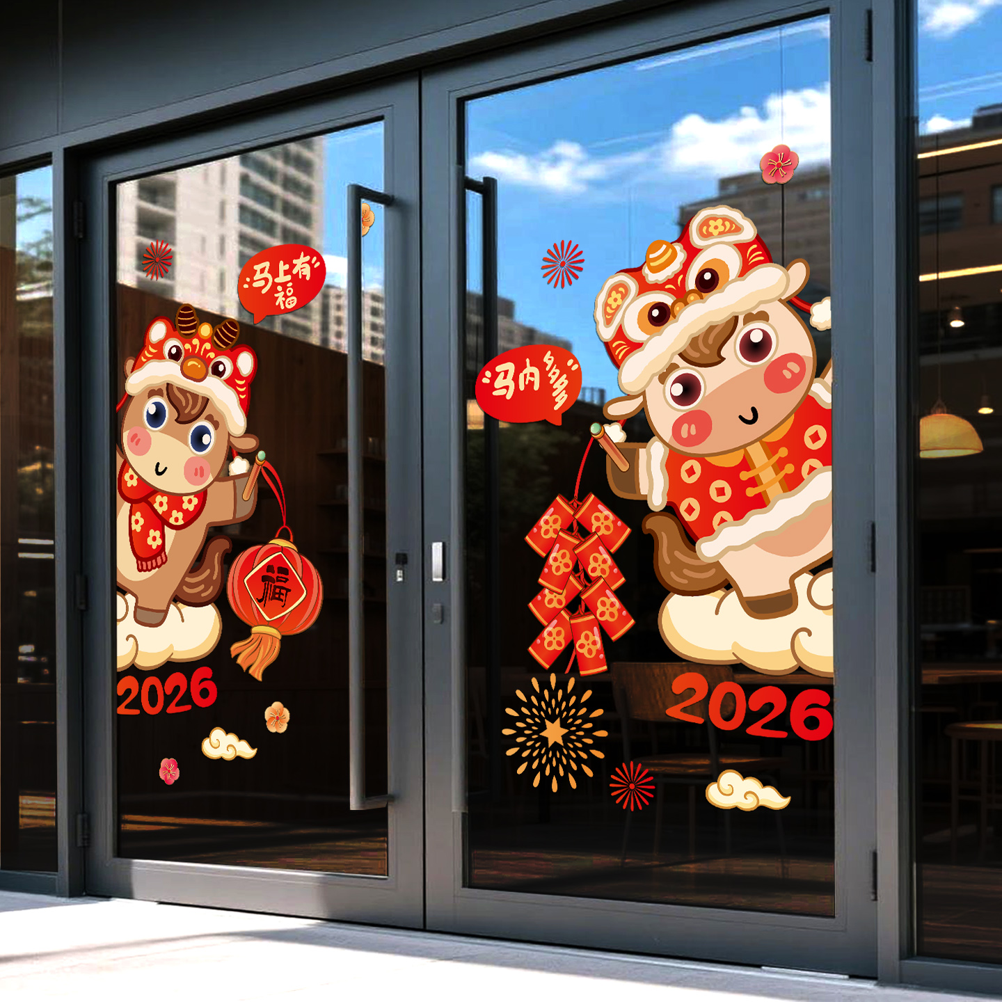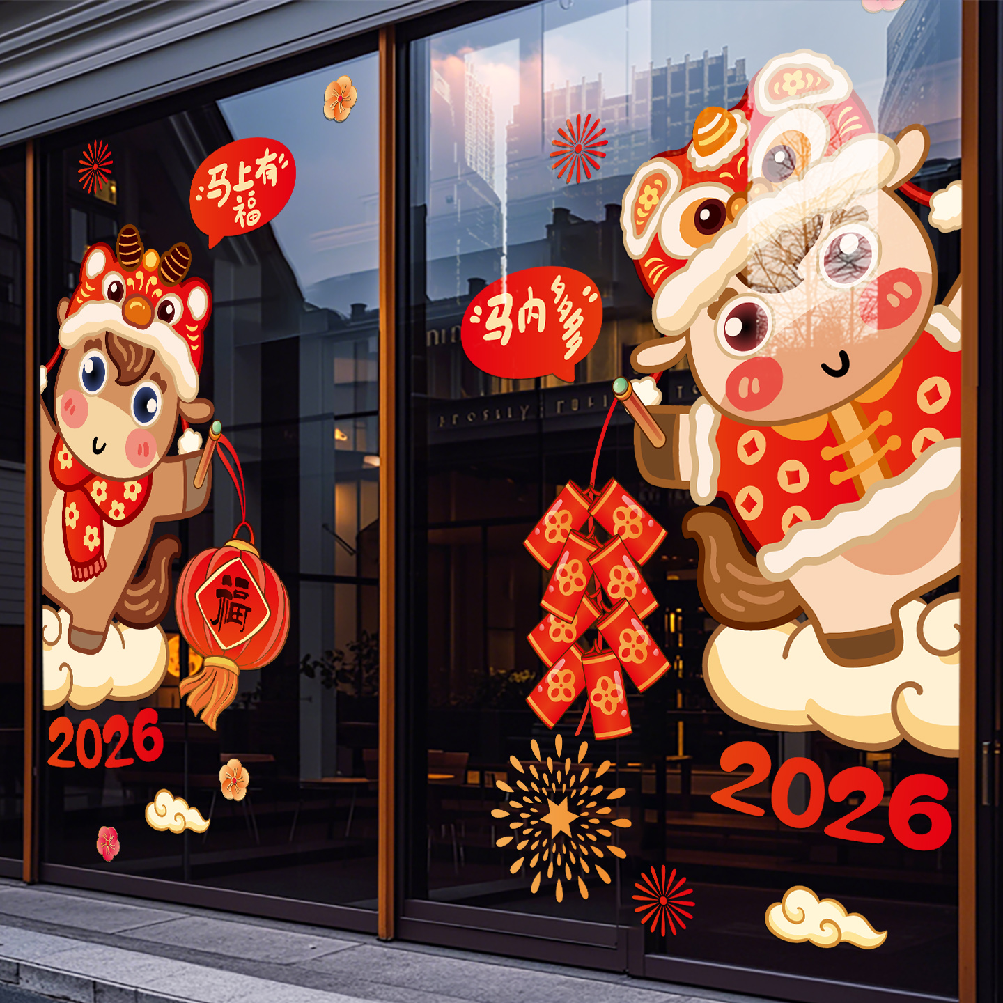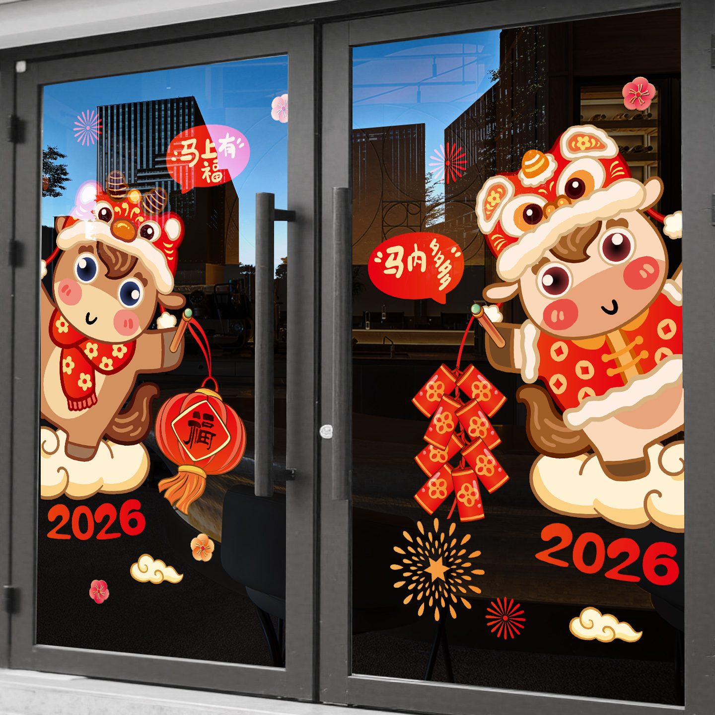 2026马年新年门贴春节布置玻璃窗户贴纸静电元旦装饰贴画过年窗贴