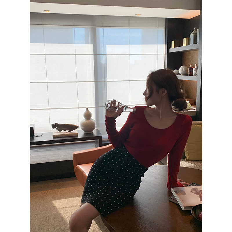 只有妮 茱莉亚 2025冬法式复古波点针织半身裙高腰显瘦包臀裙女