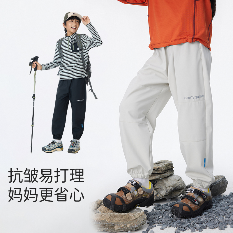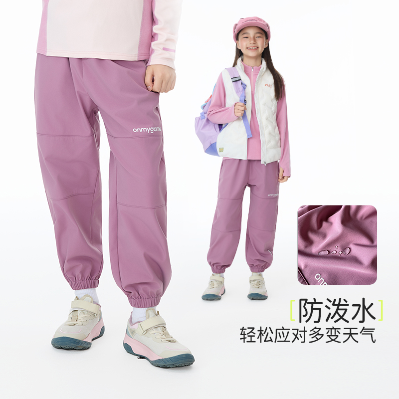 onmygame【万能彩壳裤】儿童长裤男女童户外防泼水裤子加绒秋冬季
