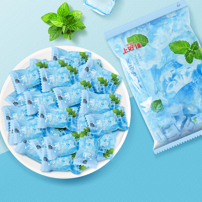 上好佳薄荷糖强劲清凉硬糖500g润喉糖清新口气招待糖果散装批发