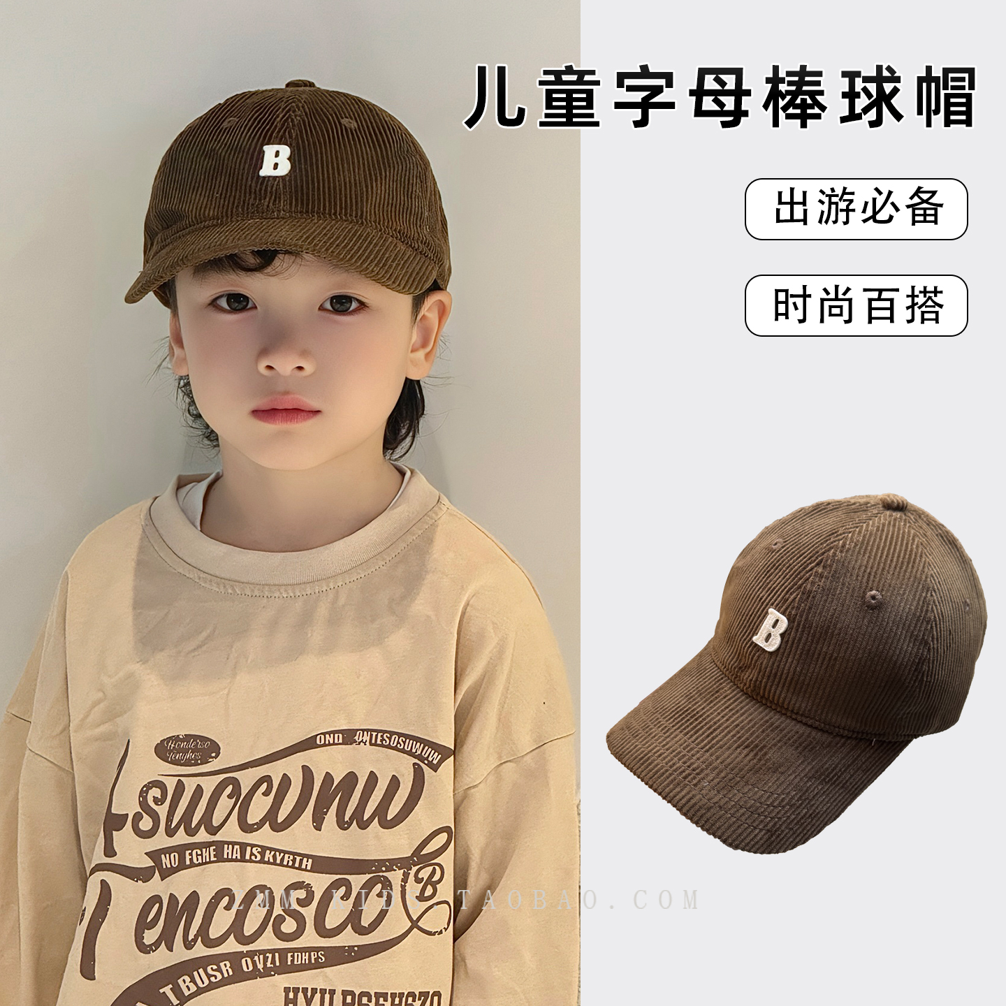 儿童棒球帽子秋季冬2025新款灯芯绒鸭舌大男孩潮酷痞帅气炸街