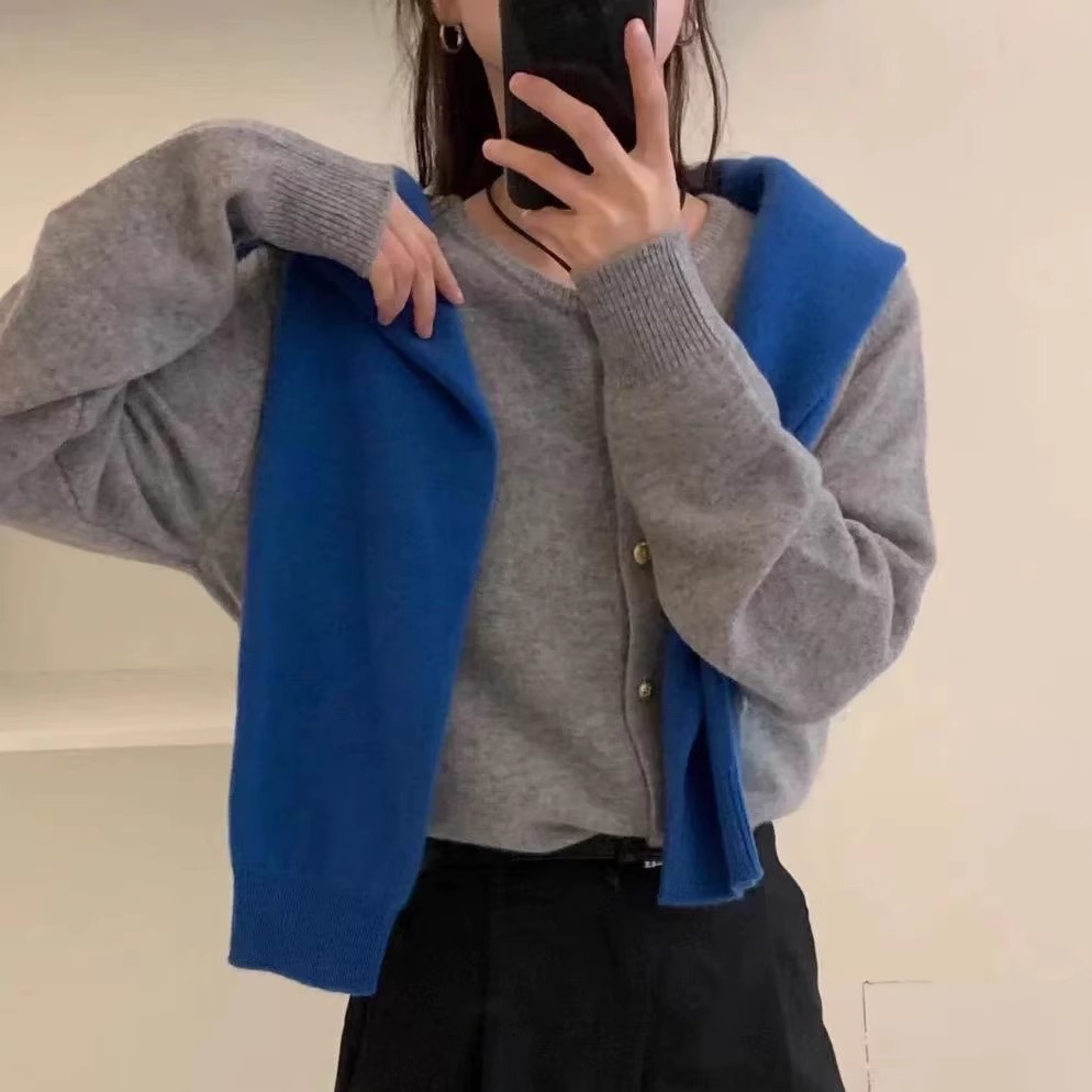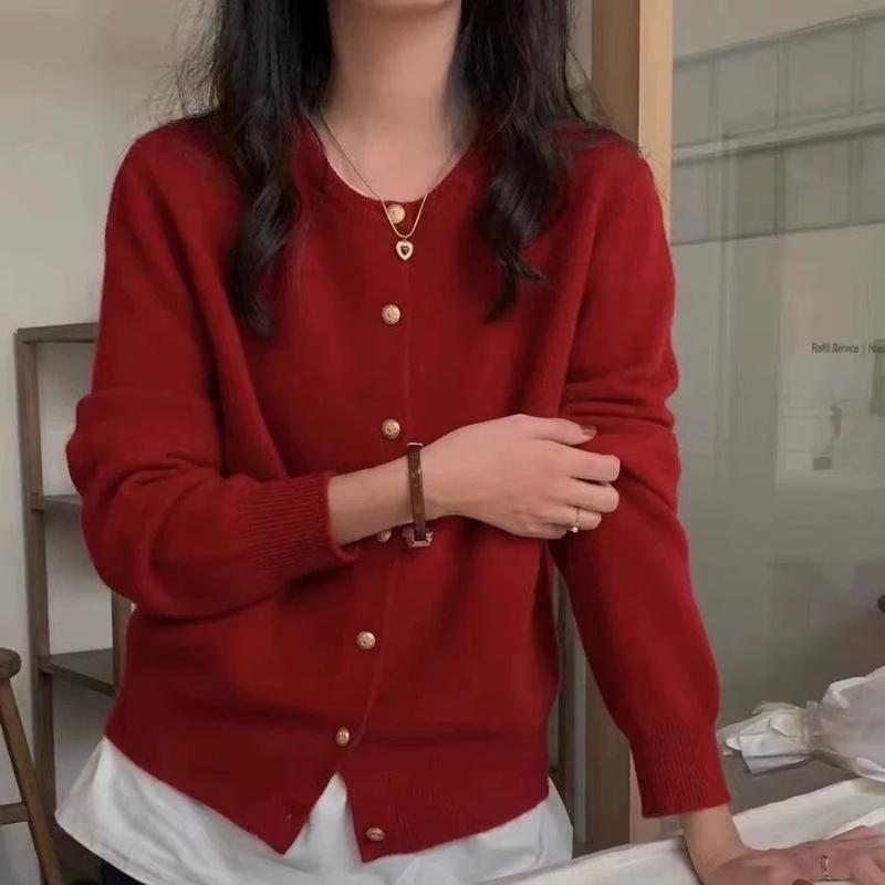 秋冬新款圆领山羊绒开衫女高端软糯气质百搭长袖针织韩系毛衣外套