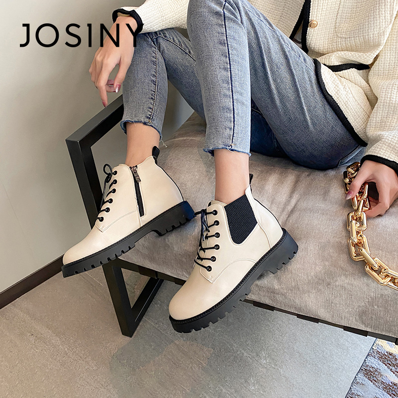 卓诗尼春新款舒适厚底女鞋显脚潮流小马丁靴女ins英伦风瘦瘦短靴