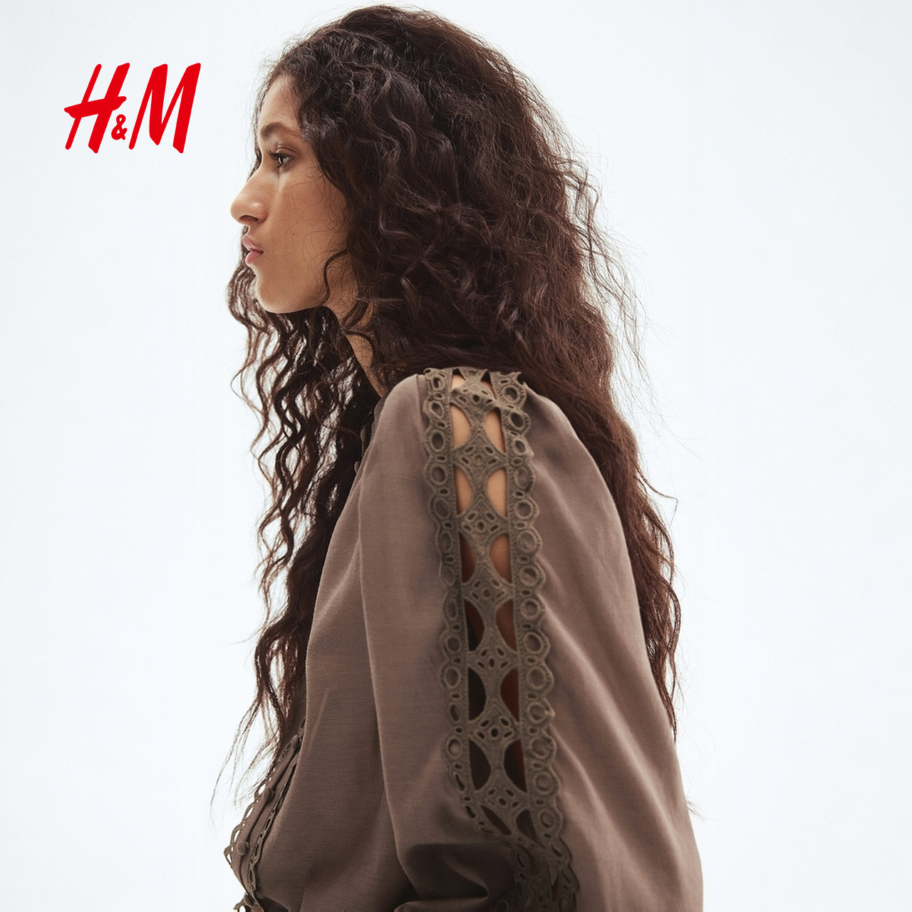 HM女装衬衫2025新款气质柔软时尚长袖潮流蕾丝饰边上衣1303736