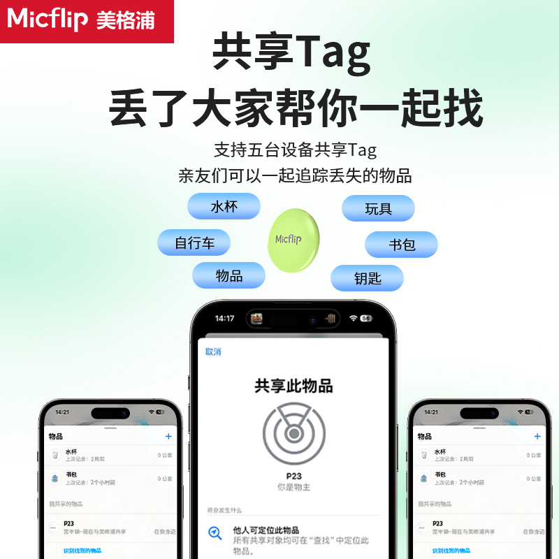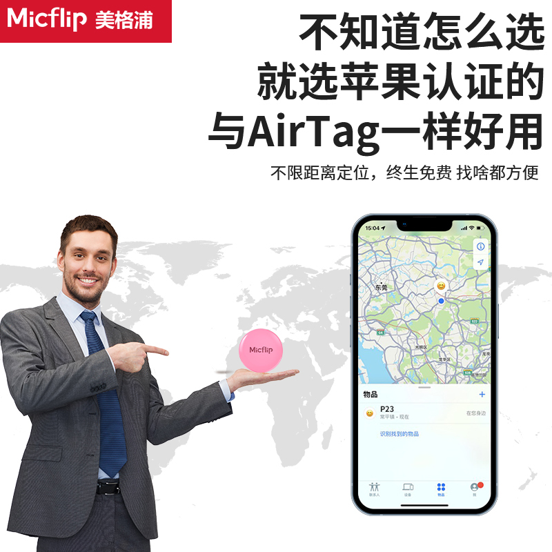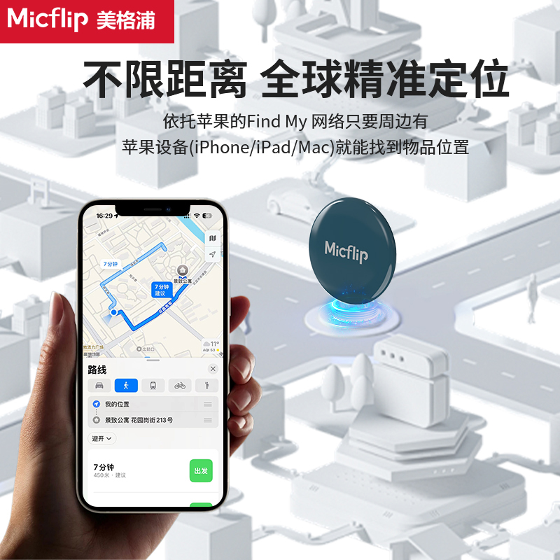 Micflip美格浦苹果迷你防丢定位器查找器平替airtag女男汽车钥匙扣防丢神器行李箱猫咪狗防丢定位宠物Tag挂件