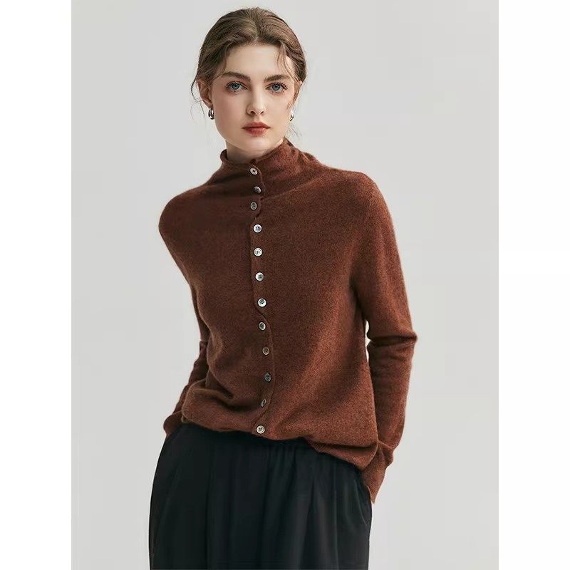 法国Rixo kiel复古灰色卷边高领毛衣开衫女秋冬针织外套打底上衣